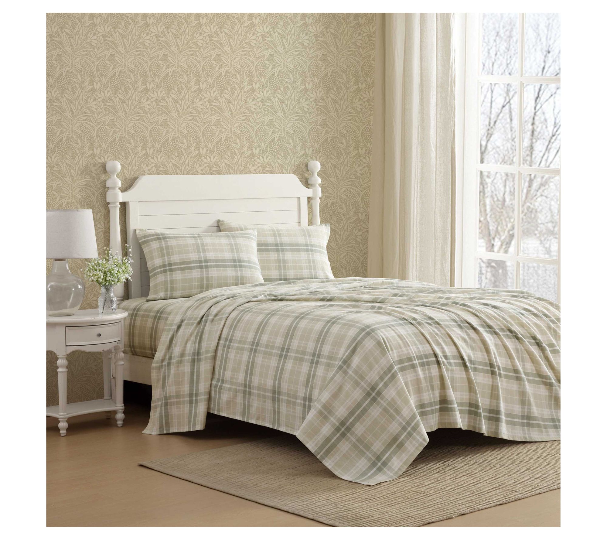 Soft flannel sheets offer a warm welcome at the end of any day, especially with the inviting plaid pattern and plush cotton feel of this Laura Ashley sheet set. With a luxuriously cozy finish and a secure fit for your queen-size mattress, these sheets help create a comfortable retreat that's easy to care for. From Laura Ashley.