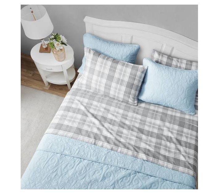 Laura Ashley Mulholland Plaid Grey Full Sheet Set