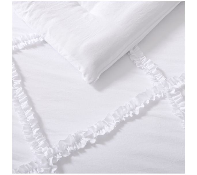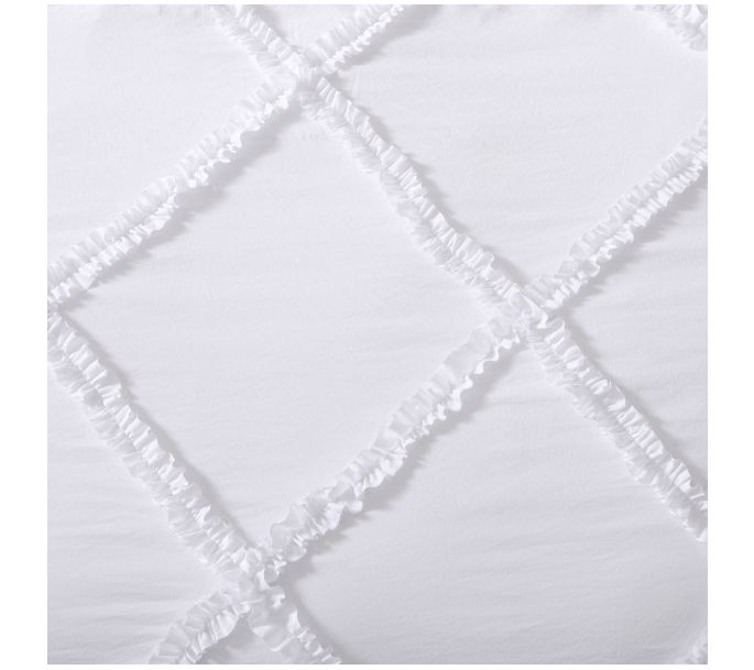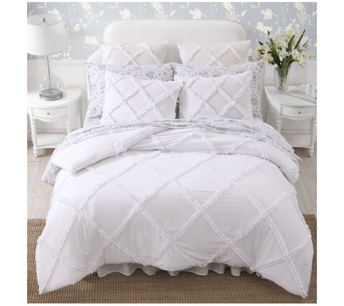 Add a touch of timeless elegance to your bedroom with the Laura Ashley Norah solid microfiber comforter and sham set. The romantic ruffles in a diamond pattern create an heirloom style, while the solid white color offers versatility to match any decor. From Laura Ashley.
