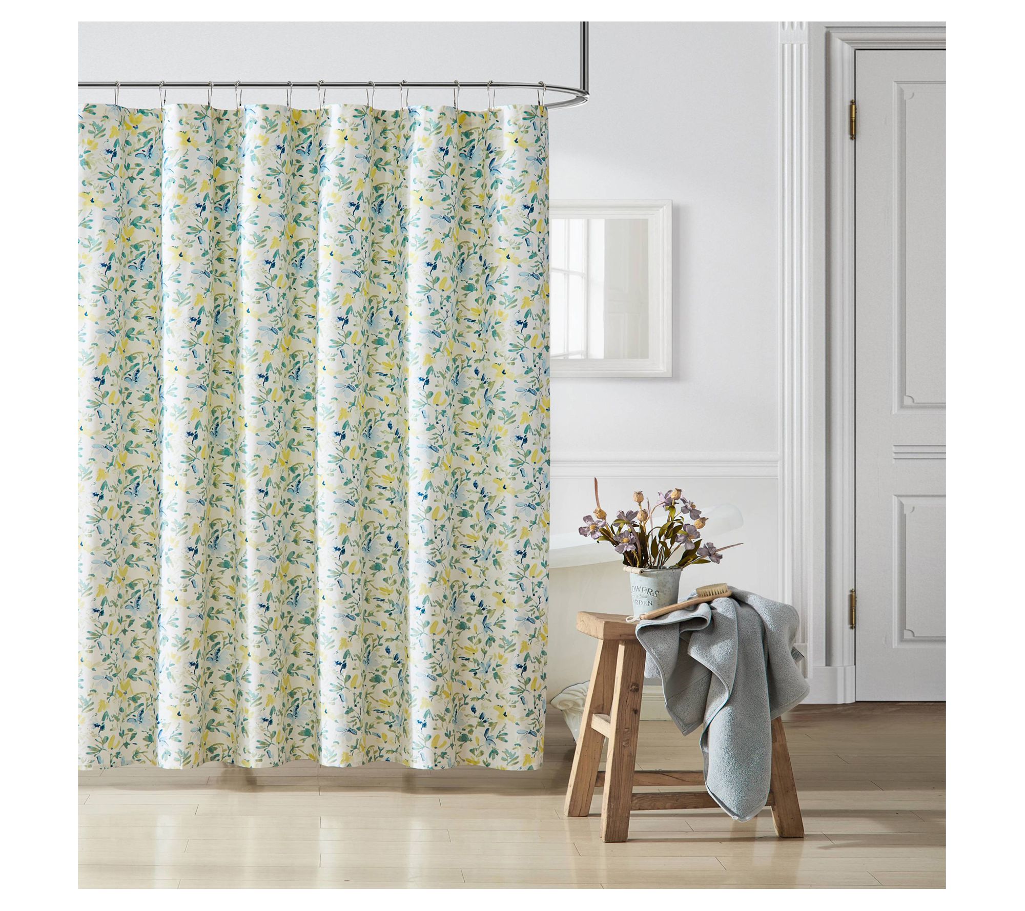 Update your bathroom with the Laura Ashley Nora Floral Shower Curtain, featuring a beautiful watercolor floral design in a garden-fresh palette of cornflower blues and sunny yellow. This cotton-blend curtain brings a fresh and airy look to any space. From Laura Ashley.