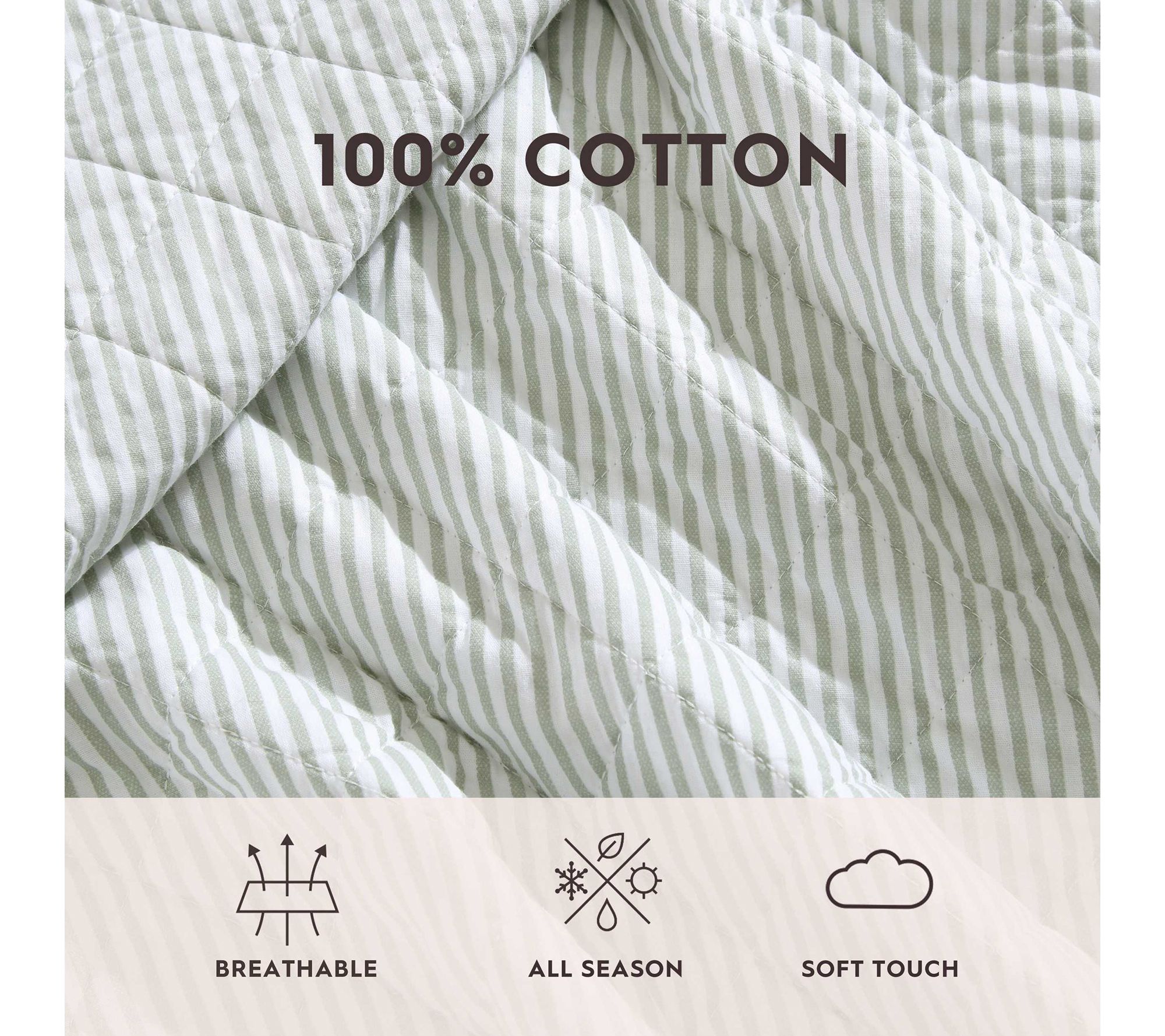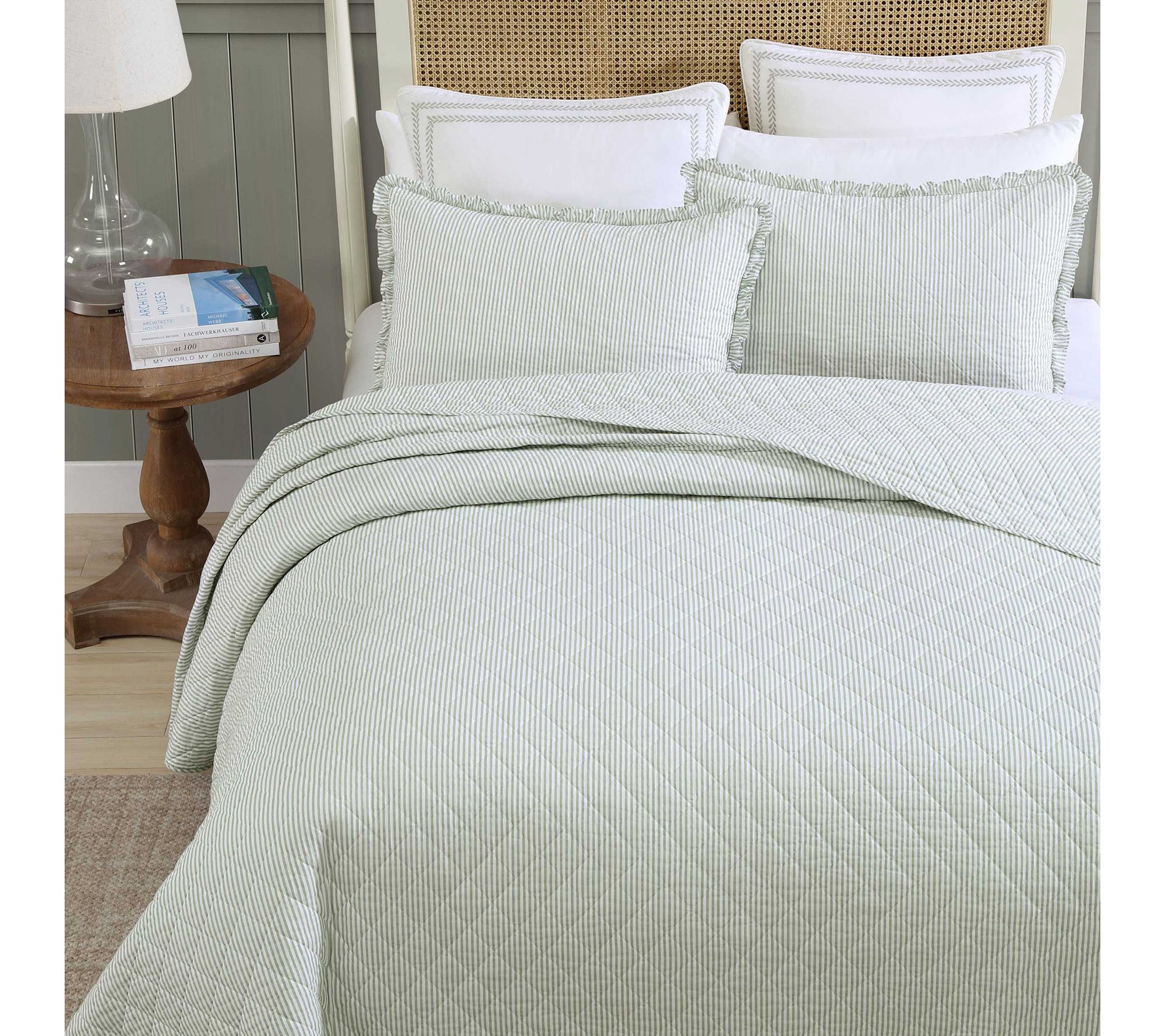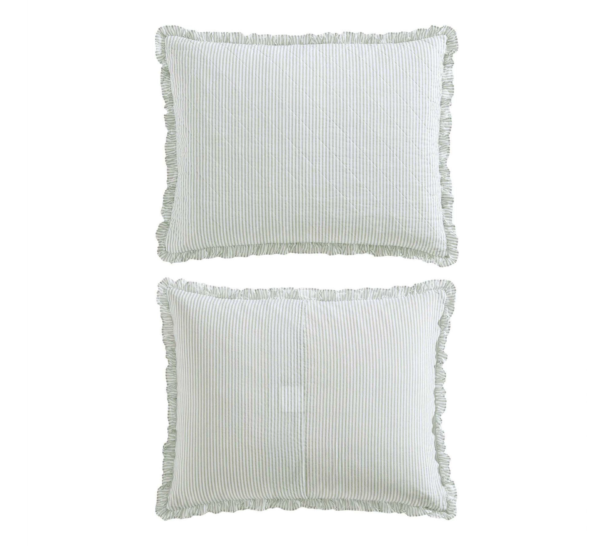 Laura Ashley Oxford Stripe Green King Quilt Sham Set