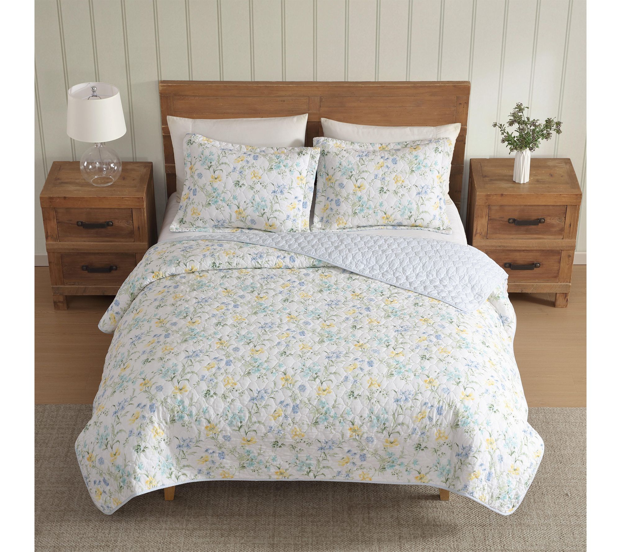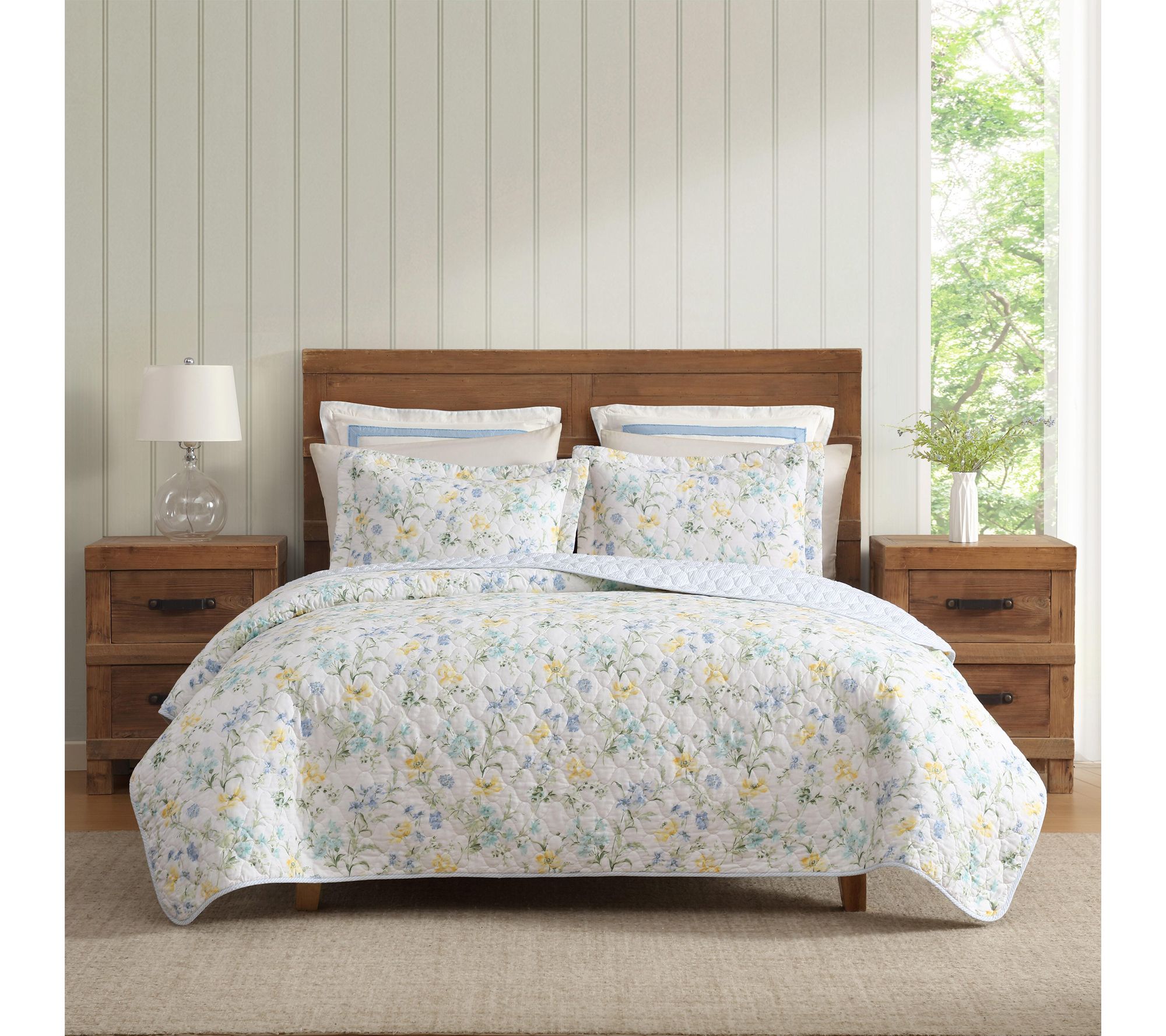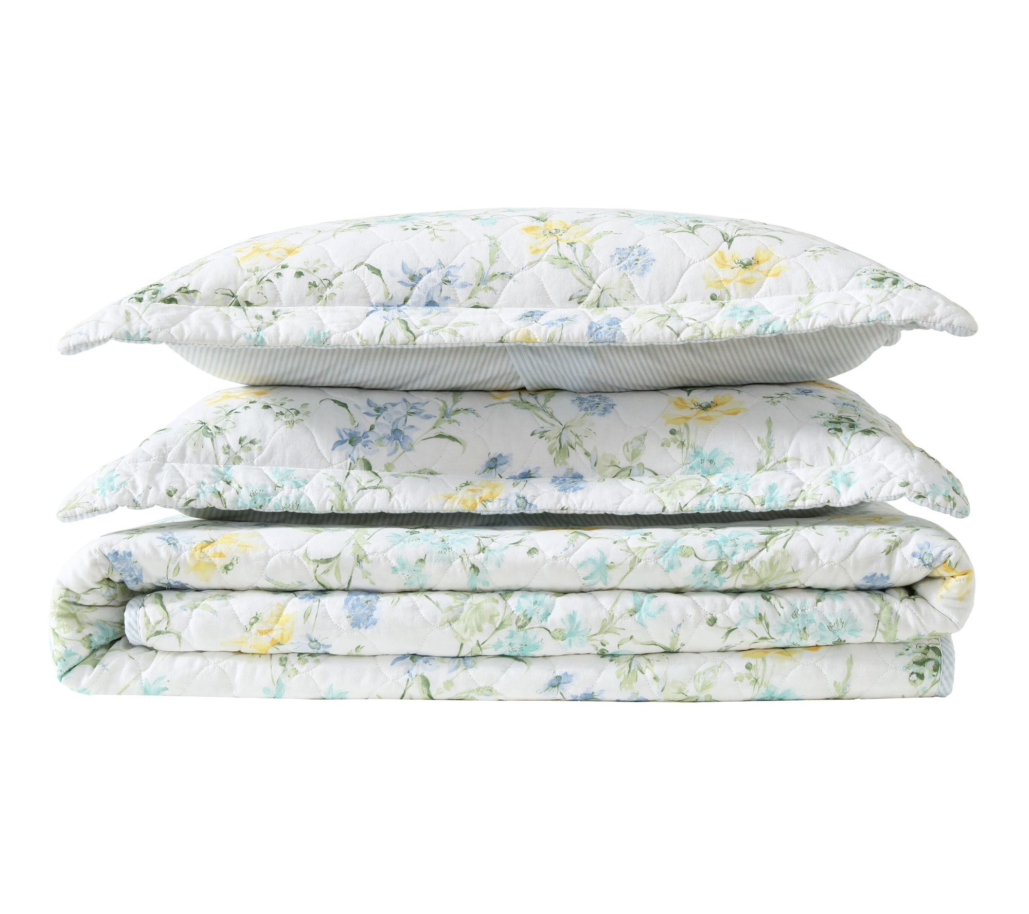 Laura Ashley Poppy Meadow Yellow/Blue Cotton Queen Quilt Set