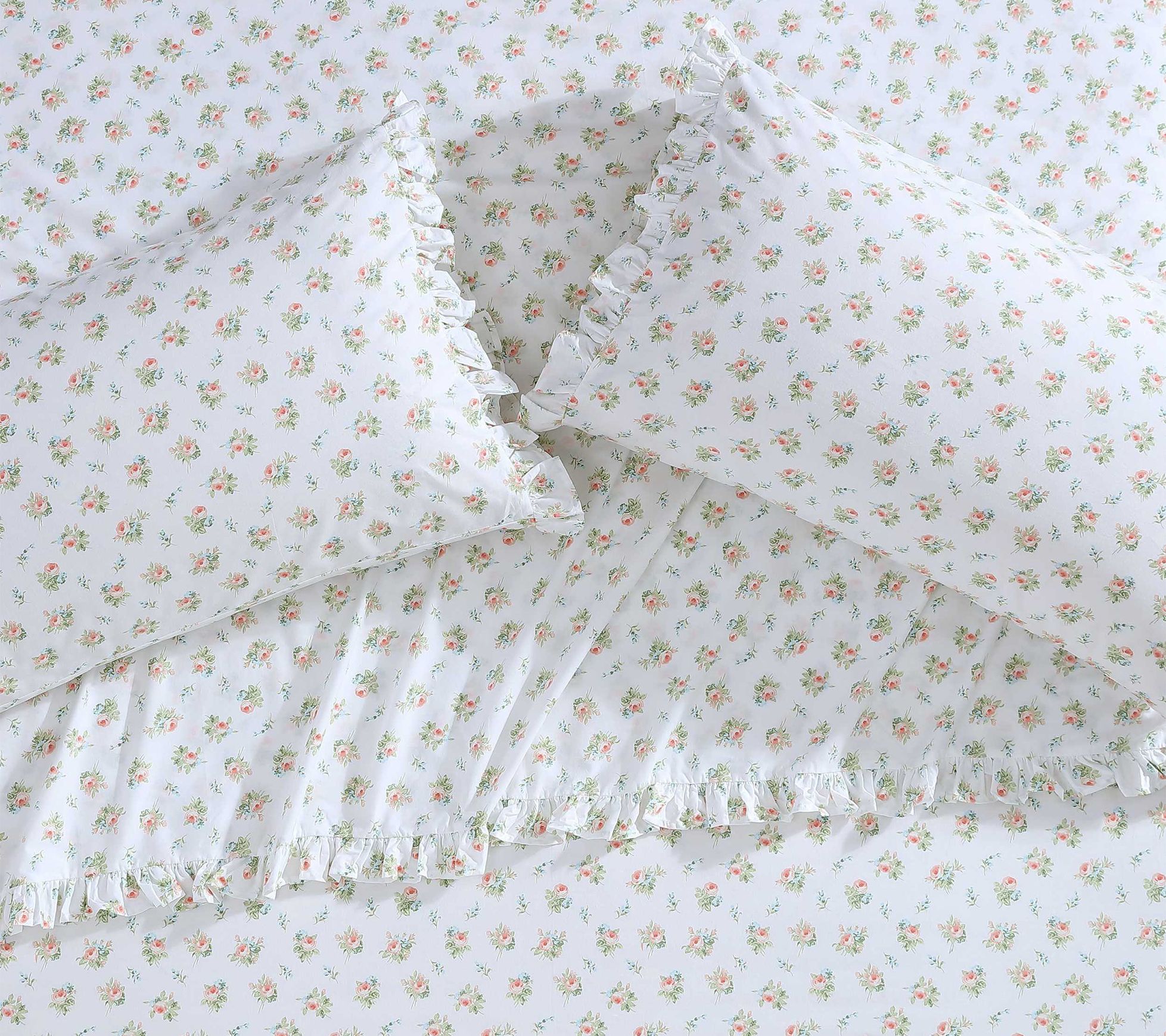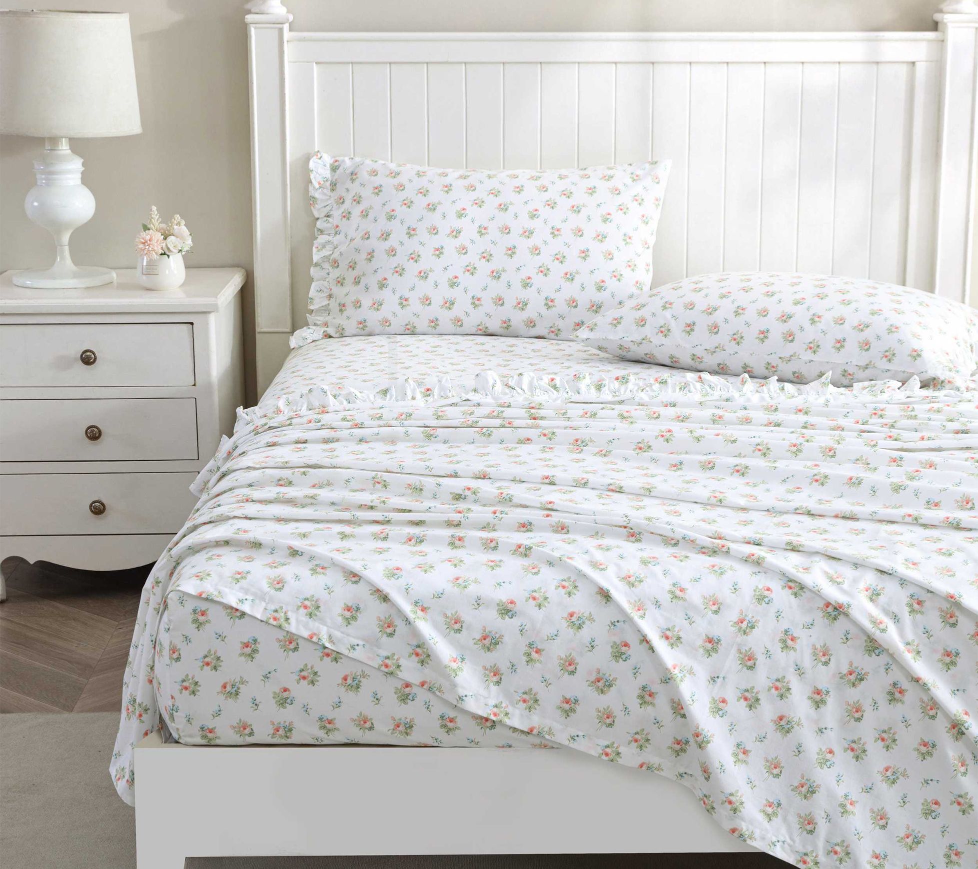 Introduce a touch of romance and elegance to your bedroom with the Laura Ashley Roseford Orange Floral Twin Sheet Set. The charming floral pattern and delicate ruffle details create an inviting and tranquil atmosphere that's perfect for relaxation. Enjoy the comfort and luxury of these premium sheets, crafted to enhance your sleep experience. From Laura Ashley.