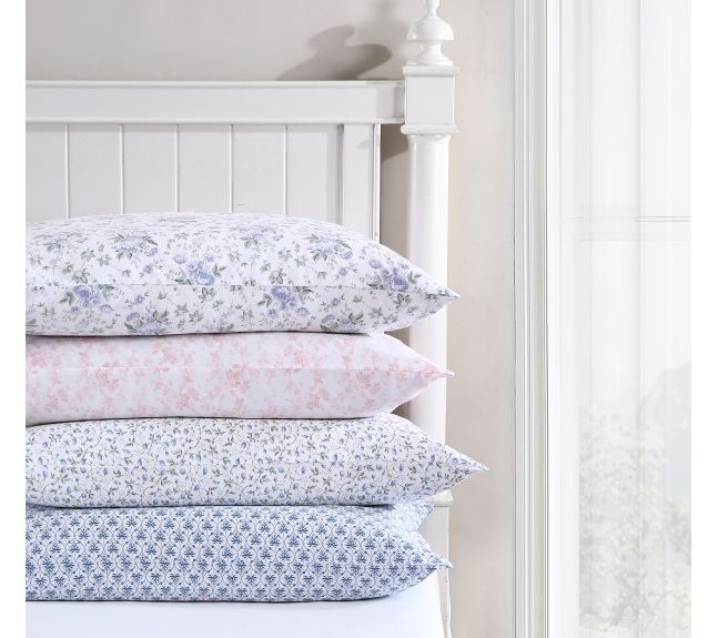 Add a touch of vintage charm to your bedroom with the Laura Ashley Rosemarie blue king sheet set. Made from 300 thread count cotton sateen, these sheets offer silky softness that gets even better with each wash. The floral pattern adds a timeless appeal, perfect for mixing and matching with other bedding. From Laura Ashley.