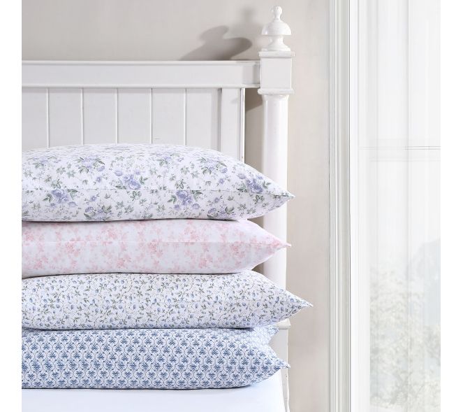 Add vintage charm to your bedroom with the Laura Ashley Rosemarie blue queen sheet set. Crafted from long-staple cotton in a lustrous sateen weave, these sheets offer silky softness that improves with each wash. From Laura Ashley.