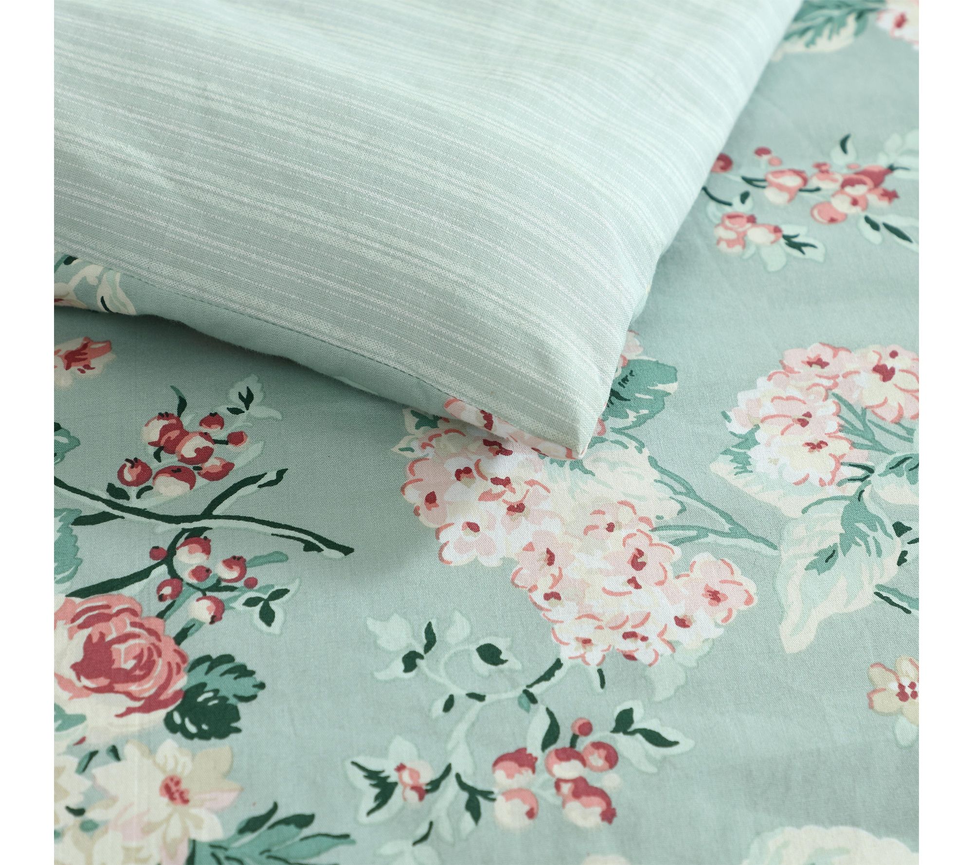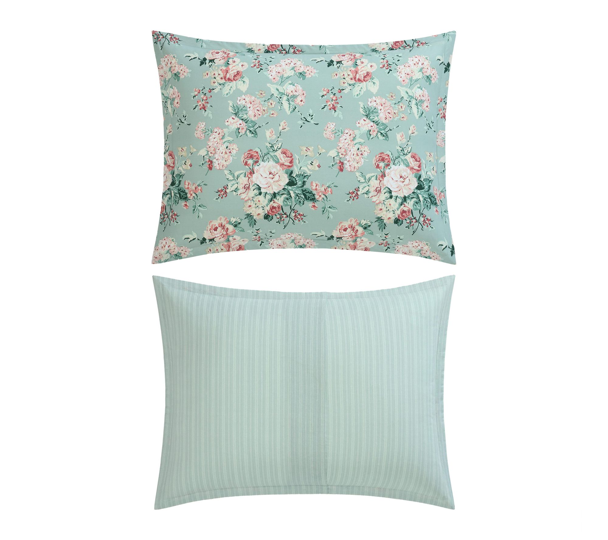 Transform your bedroom into a serene retreat where romance and fresh style come together. The Rosemoore floral comforter set surrounds you in soft pastel hues of pink and teal, blending classic vintage design with modern flair for an inviting atmosphere that's both elegant and restful. From Laura Ashley.