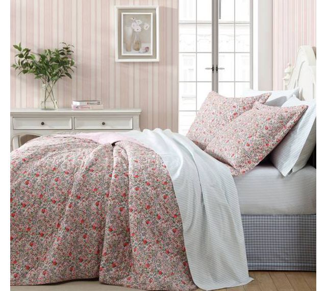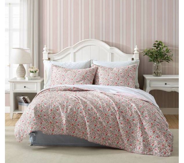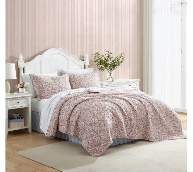 Blending innovation with tradition, Laura Ashley reimagines its hallmark ditsy floral prints for modern living with the Rowena pink twin quilt. This heirloom-inspired quilt, decorated with a small-scale painted floral in a fresh palette, adds both warmth and charm to any bedroom. From Laura Ashley.