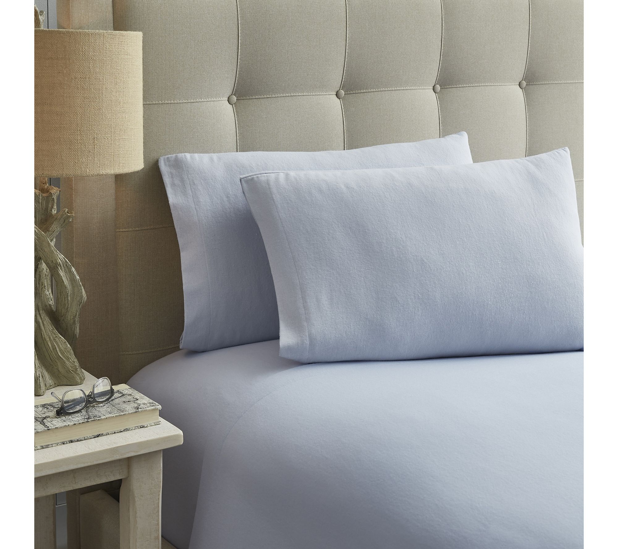 Bring a beautiful new look to your bed with this Laura Ashley Solid Blue King Flannel sheet set. These elegant sheets offer the ultimate comfort, warmth, and style, with a cozy finish achieved through an eight-level brushing process. From Laura Ashley.