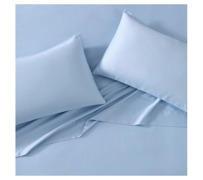 Bring simplicity and style to your bedroom decor with the Laura Ashley solid blue king sheet set. Featuring a serene and elegant color palette, these sheets are crafted from a luxurious 800-thread count cotton blend for a silky feel and a lustrous sateen weave. From Laura Ashley.