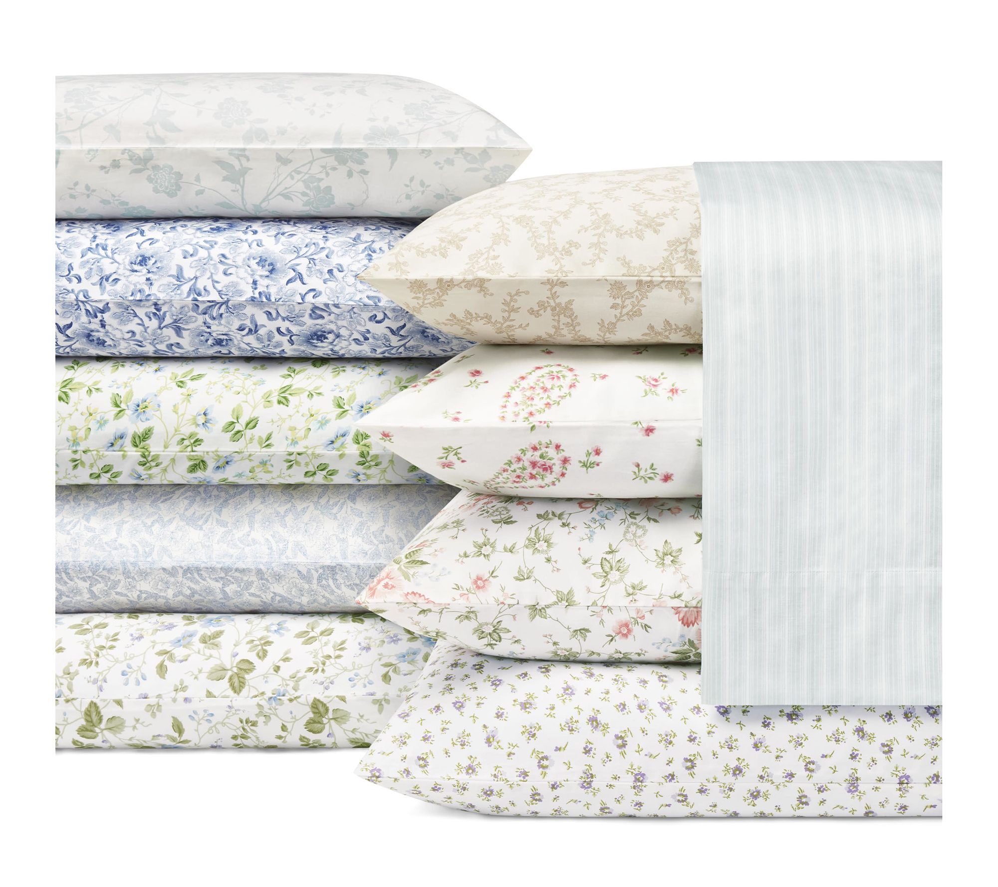 Bring cottage charm to your bedroom with this Laura Ashley king sheet set. Made from long-staple cotton with a 300-thread count, each piece showcases a lustrous sateen weave that softens with each wash. Floral prints add timeless elegance to your space, making them a perfect mix with both solid and patterned bedding. From Laura Ashley.
