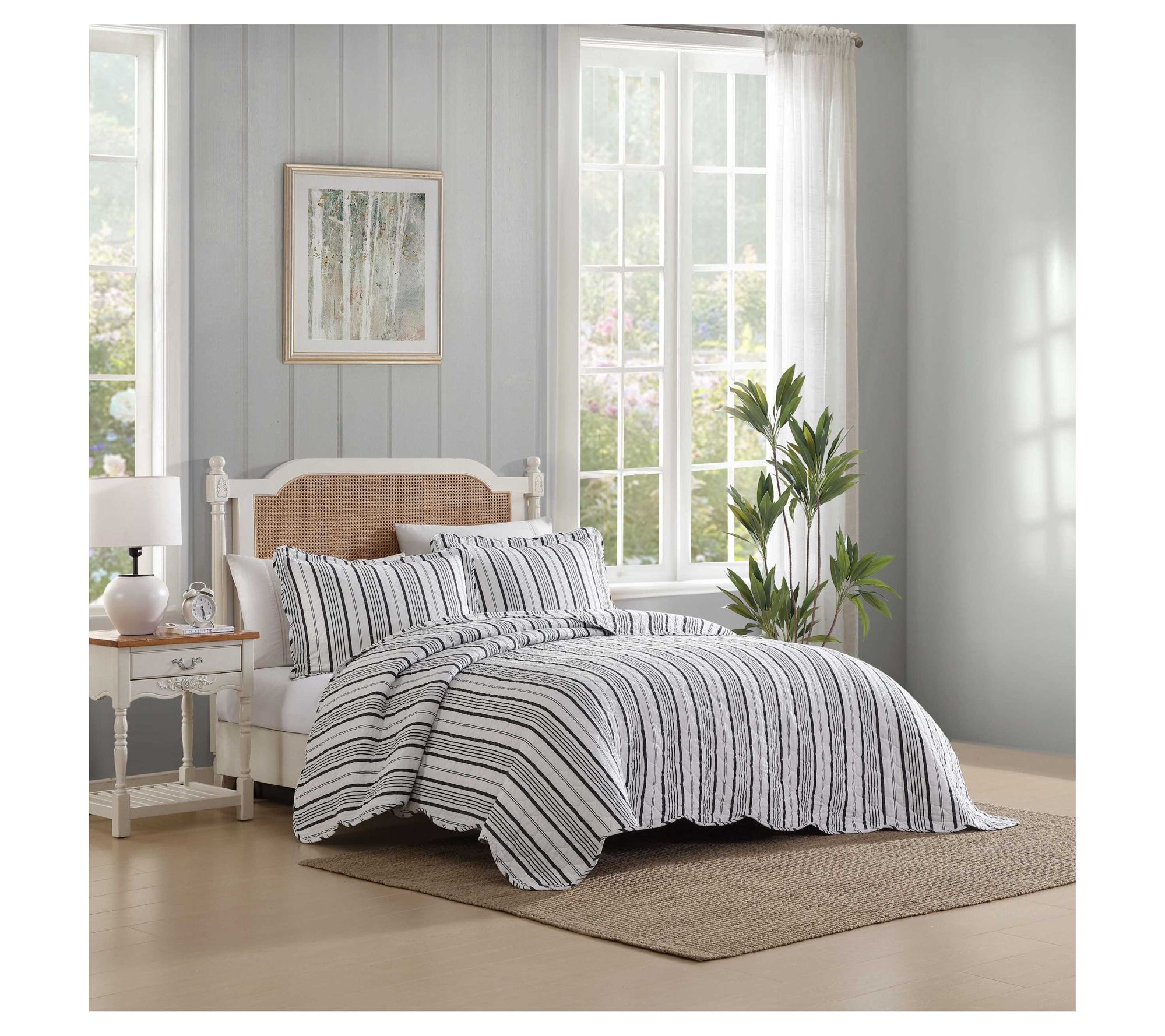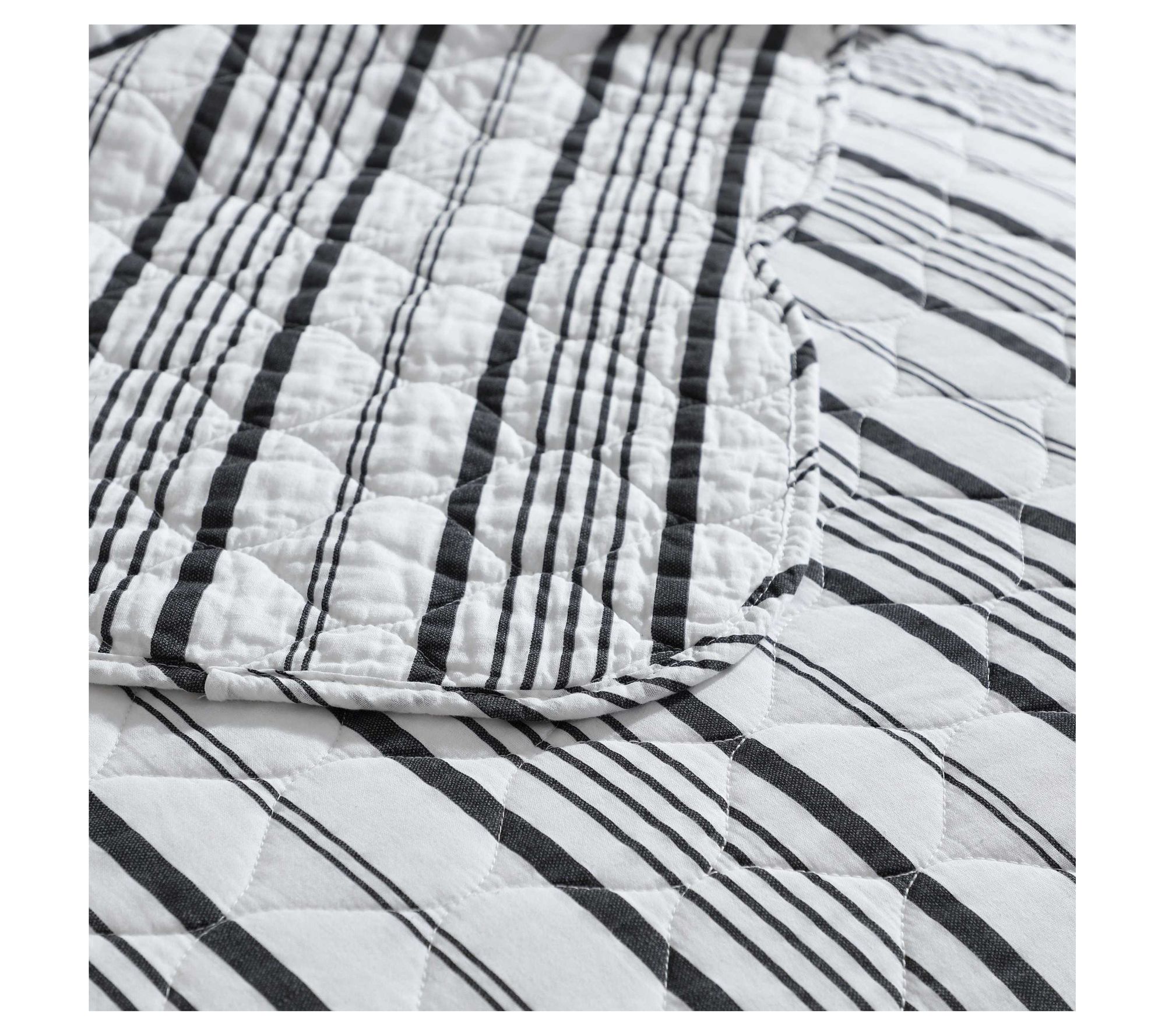 You'll love the versatile charm the Laura Ashley Stripe Perfection quilt set brings to your bedroom. Combining a beautiful striped design in charcoal grey with crisp white, this set offers a timeless nautical touch. Prewashed for softness, its lightweight construction ensures cozy comfort throughout the year. From Laura Ashley.