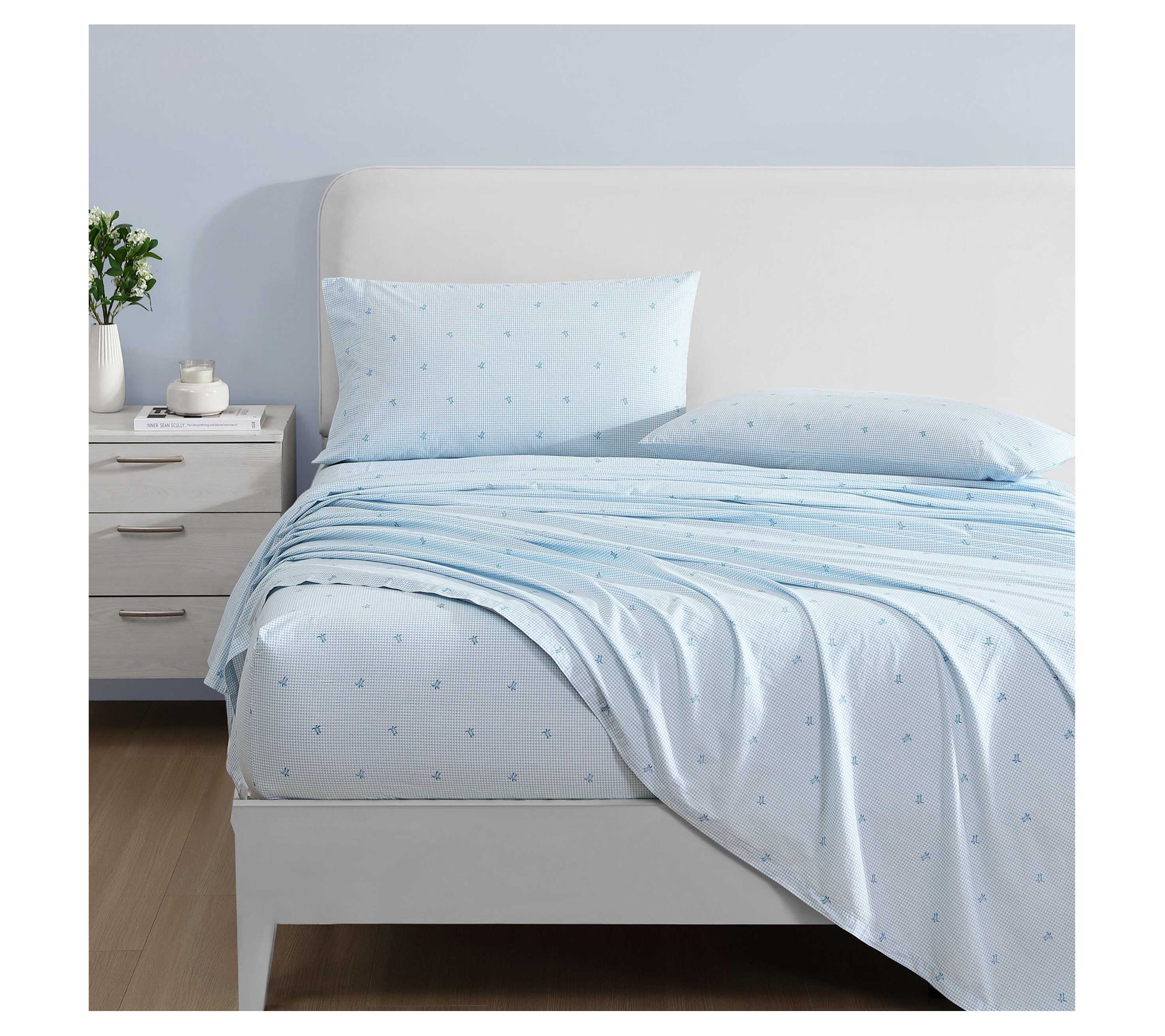 Laura Ashley Turtle Gingham Blue Twin Sheet Set