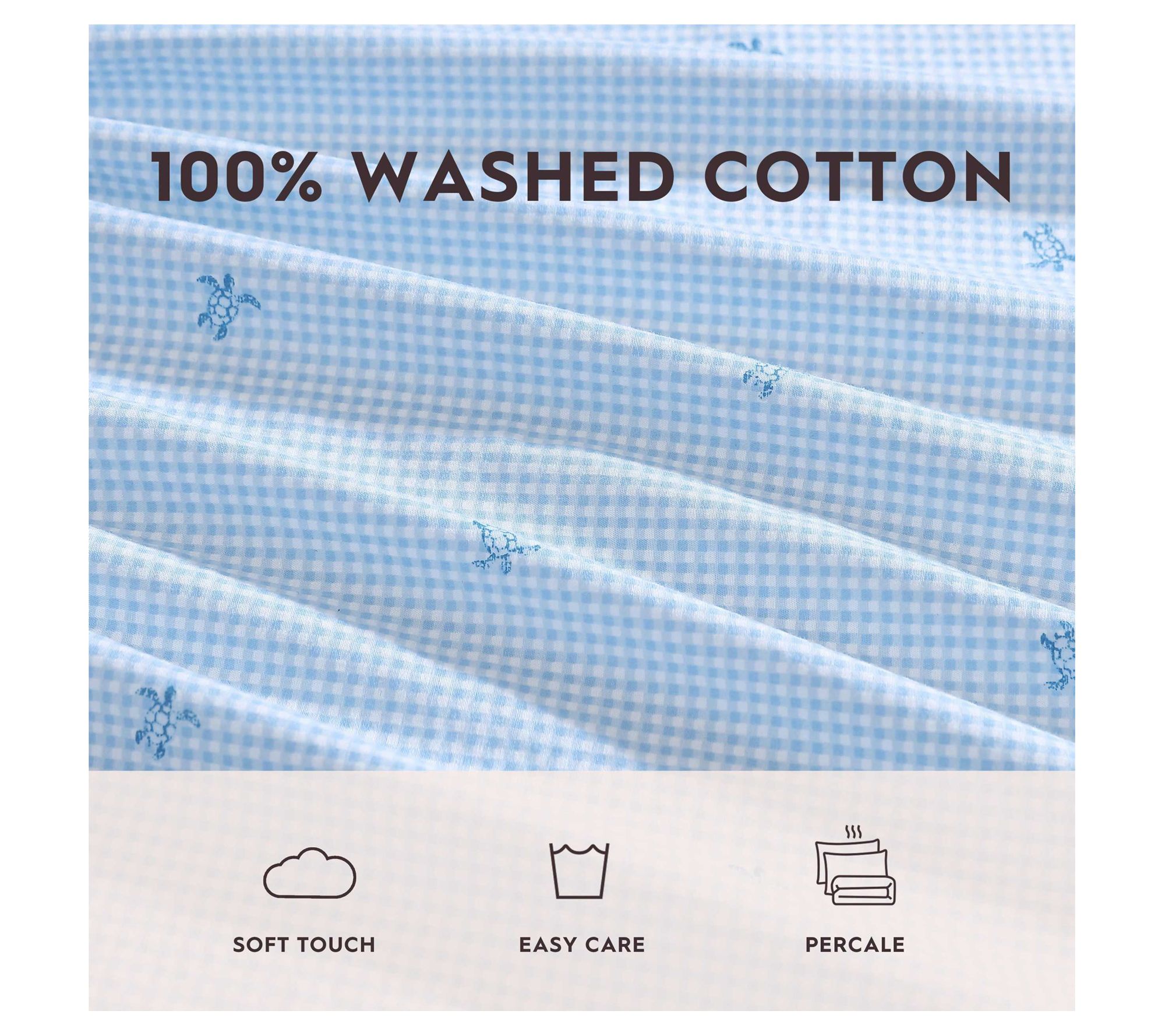 Immerse yourself in the tranquility of coastal living with the Laura Ashley Turtle Gingham Blue Twin sheet set. Made from 100% cotton, these sheets feature a charming gingham and turtle design, bringing a touch of the seaside to your bedroom. Experience ultimate comfort and a secure fit as you drift off to sleep. From Laura Ashley.