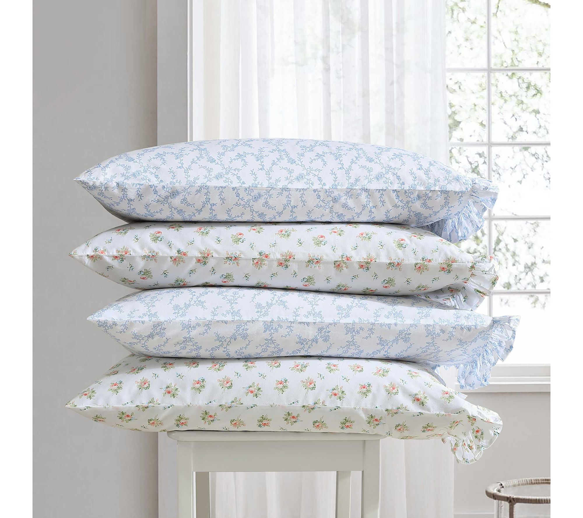 Introducing the new Laura Ashley Victoria Blue Twin XL sheet set, where timeless elegance meets luxurious comfort. Crafted from premium percale cotton, these sheets offer a soft, smooth feel for a restful night’s sleep. The delightful ruffle detail on the pillowcase and flat sheet adds a touch of romance and sophistication to any bedroom decor. From Laura Ashley.