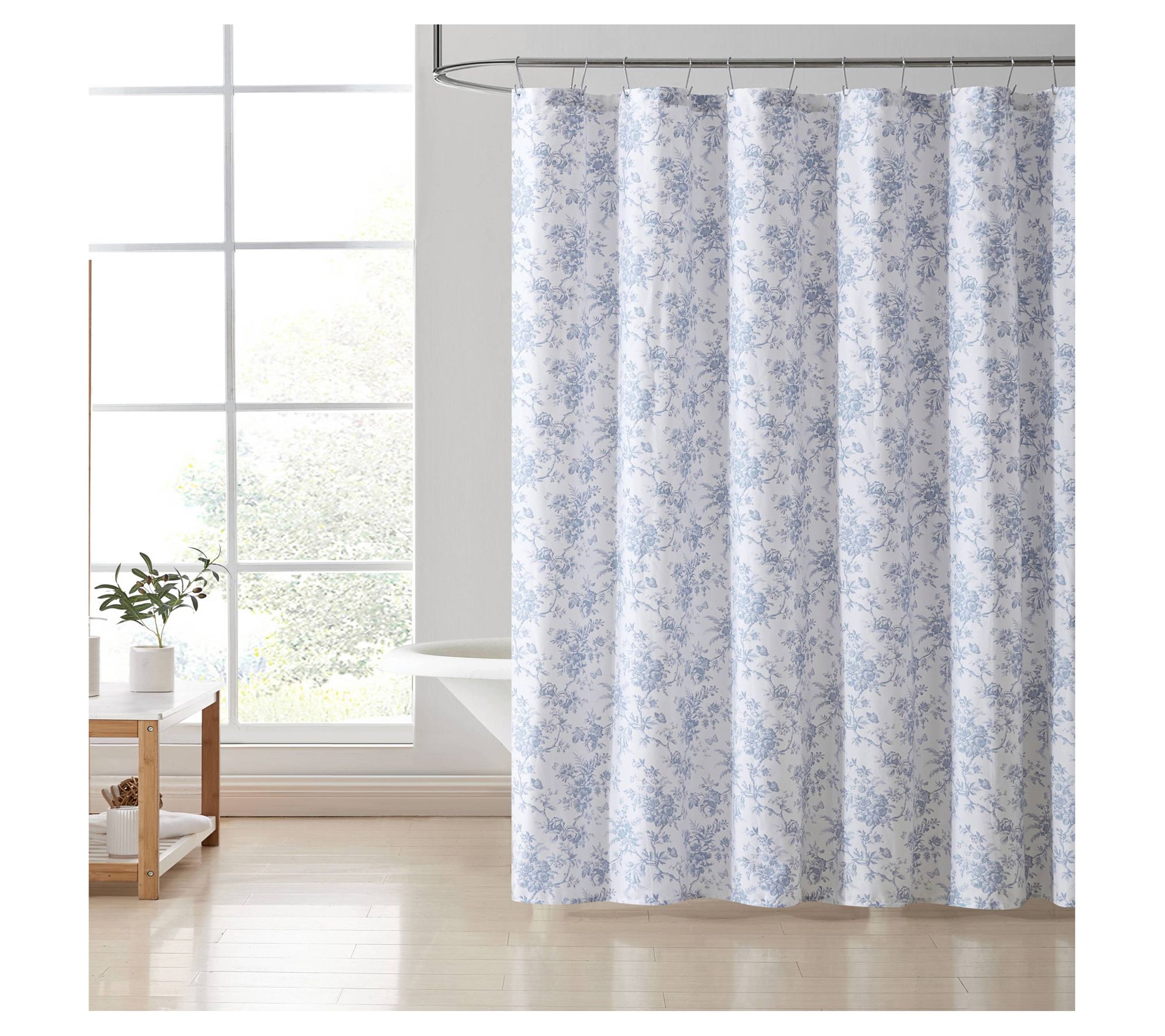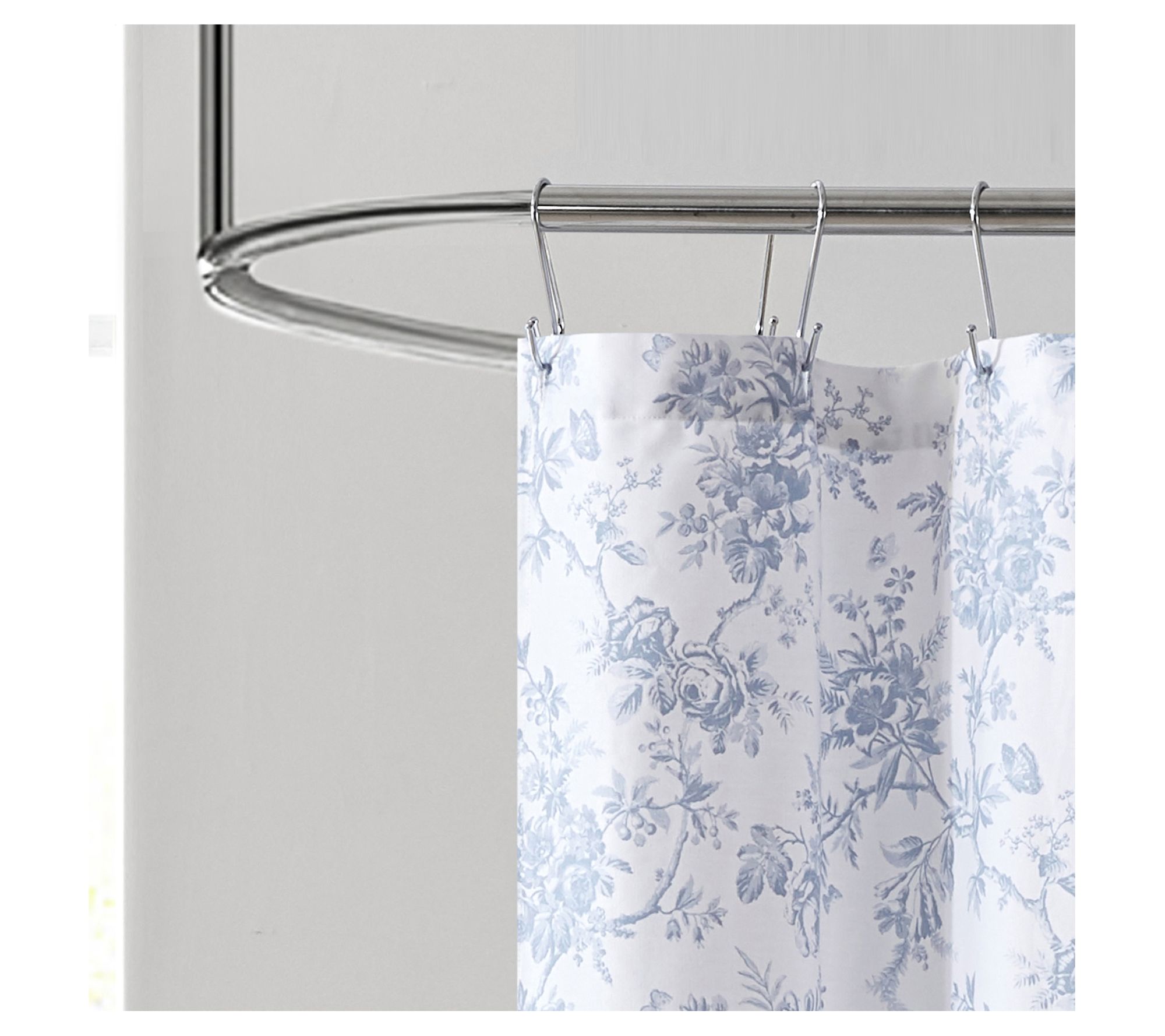 Update your bathroom with the sophisticated Laura Ashley Walled Garden Blue Shower Curtain. This refreshing cool blue floral toile pattern on crisp white cotton twill brings a touch of elegance to any bathroom. From Laura Ashley.