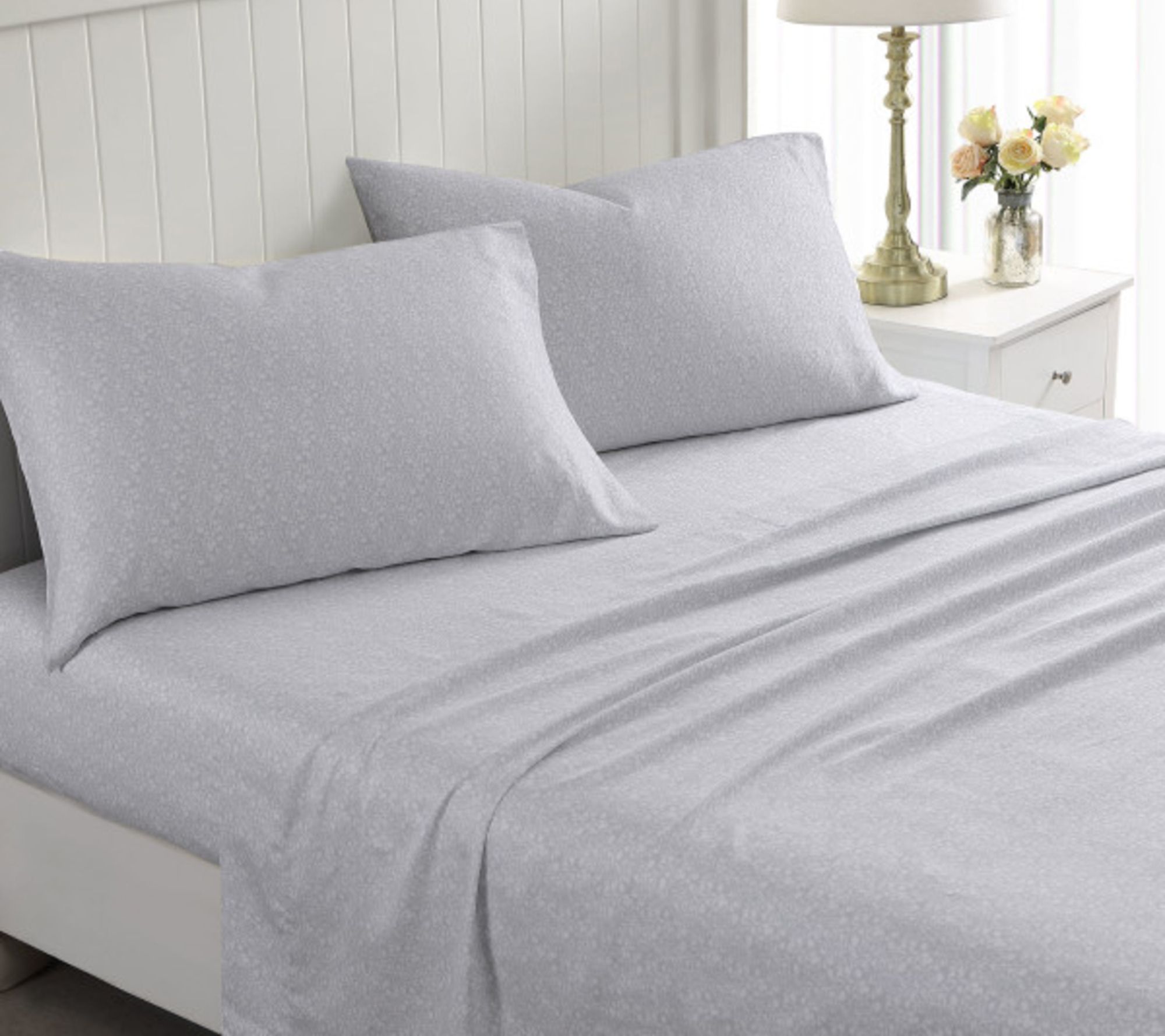Includes fitted sheet, flat sheet, and two pillowcases