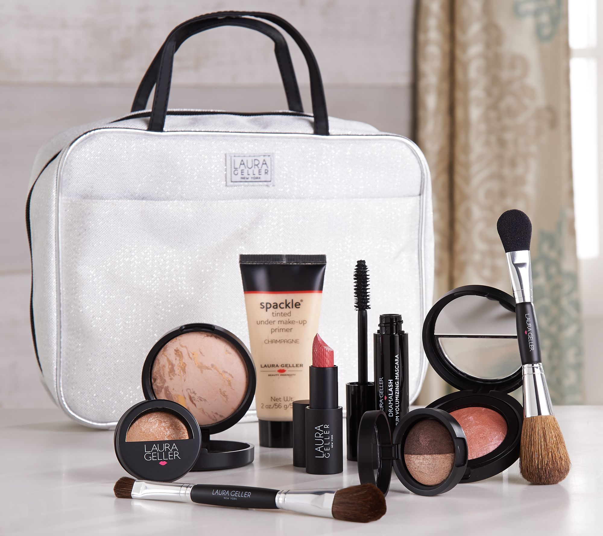 'Tis the season for Baked beauty! The Laura Geller Holiday Train Case collection includes a bevy of Baked favorites, starting with a Baked Balance-N-Brighten Foundation in your choice of five shades, plus Spackle Tinted Under Make-Up Primer, Baked Blush-N-Brighten, a Baked Eyeshadow Duo, Baked Highlighter, Baked Iconic Lipstick, DramaLASH Maximum Volumizing Mascara, and two brushes. From Laura Geller.