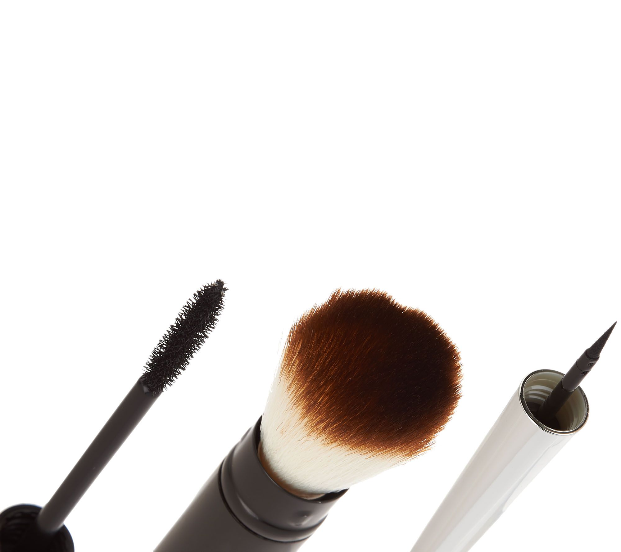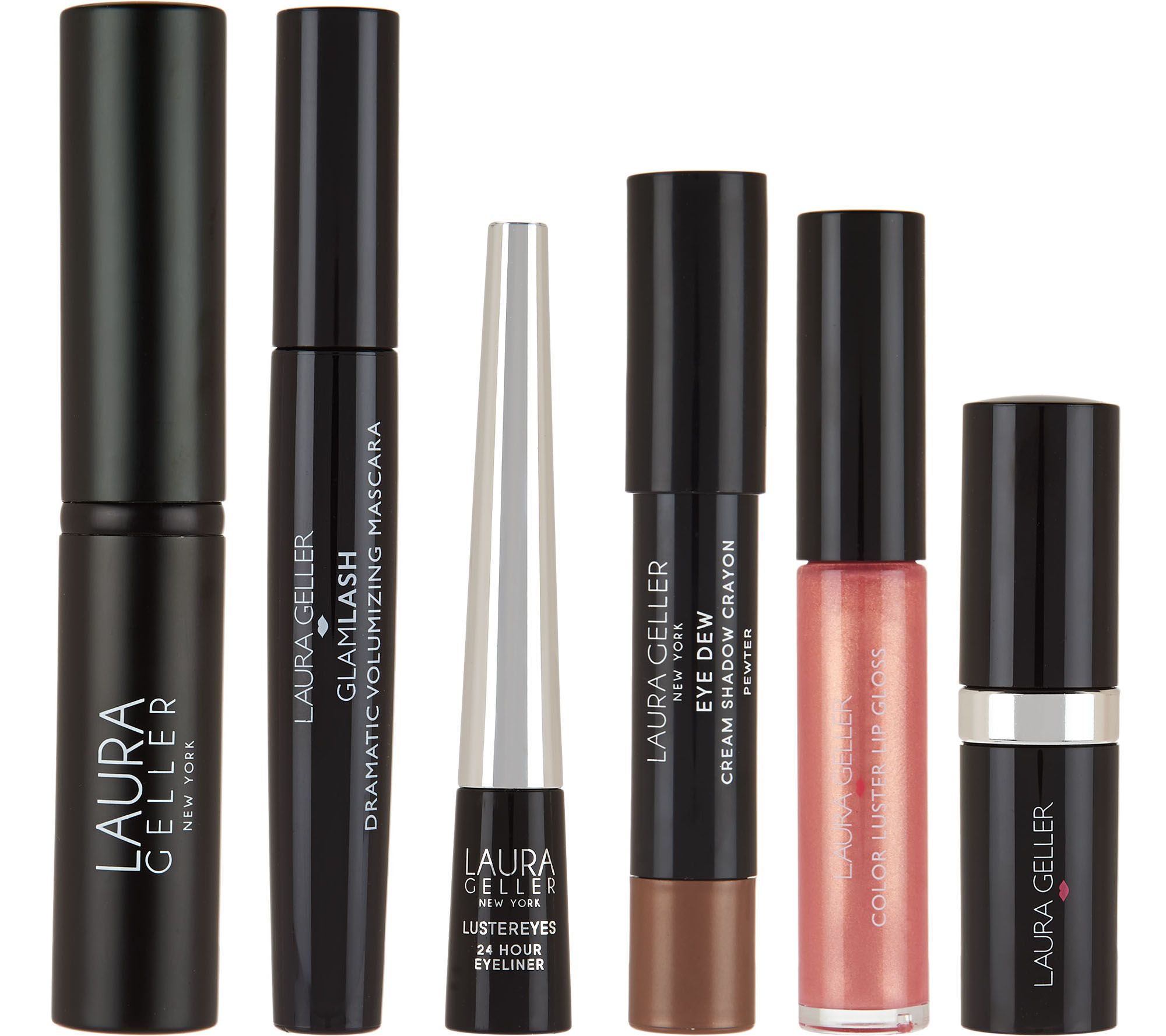 How do I use it: Using the retractable powder brush, apply Baked Balance-N-Glow Illuminating Foundation all over the face. Follow by swirling Baked Chandelier Blush in Chandelier Glow on the apples of the cheeks. Sweep Eye Dew Cream Shadow Crayon in Pewter all over the eyelid and lightly blend with finger, if desired. Using LusterEYES Eyeliner in Luster Black, apply liner along the upper lash line. Create a subtle wing at the outer corners of the eye, if desired. To ensure straight line application, rest your elbow on a table or counter while applying. Finish the eye look with a coat of GlamLASH from the base to the tips of the lashes. To finish the look, apply Color Enriched Lipstick in Pink Mink all over the lips. Sweep Color Luster Lip Gloss in Venetian Lights over top to create a gorgeous, kissable sheen.