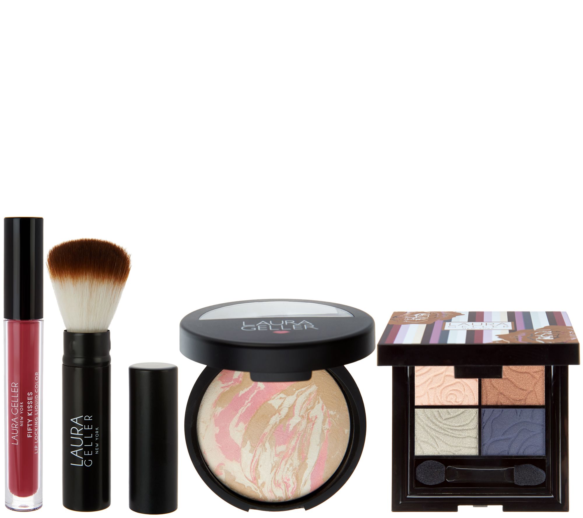 Give your look the royal treatment with the Laura Geller London in Bloom collection. Inspired by English rose gardens, high tea, and crown jewel tones, this four-piece set includes the iconic Baked Balance-n-Brighten Foundation, the First Bloom eye shadow palette featuring four regal shades, Fifty Kisses Lip Locking Liquid Color, and a retractable brush. From Laura Geller.