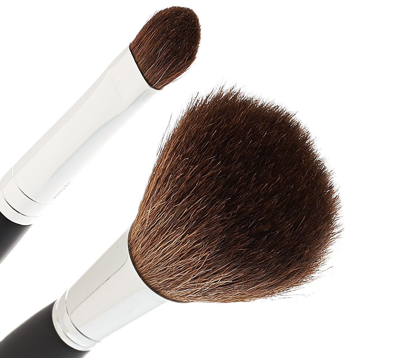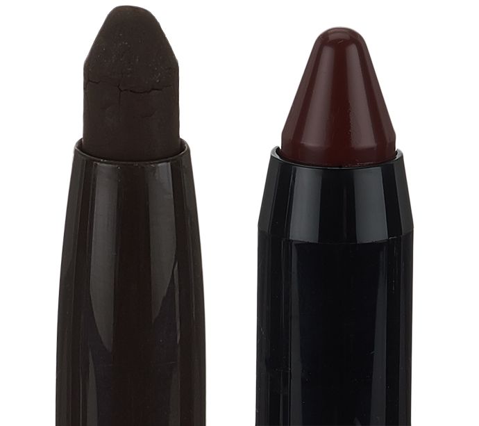 Apply lip crayon directly to lips. Use larger brush end to apply foundation and bronzer to the face. Use the smaller end to apply shadows to the eyes.