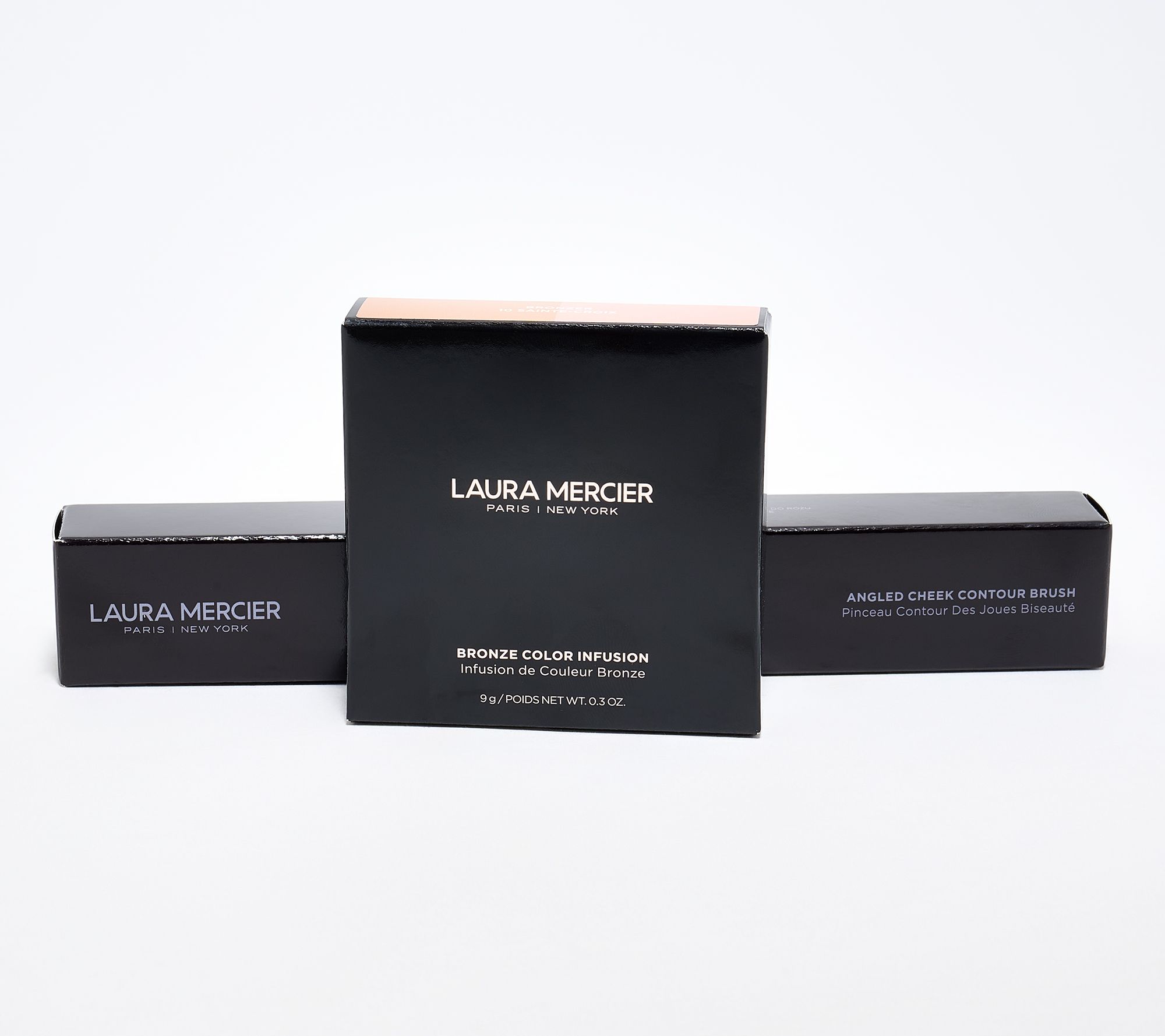 For an individual application, using the contour brush, apply the matte Sculpt shade over cheeks, temples, and forehead. Use what is left on the brush to sweep color across the center of the face, going over the nose. Next, apply the Glow shade over the cheeks and across the center of the face, going over the nose.