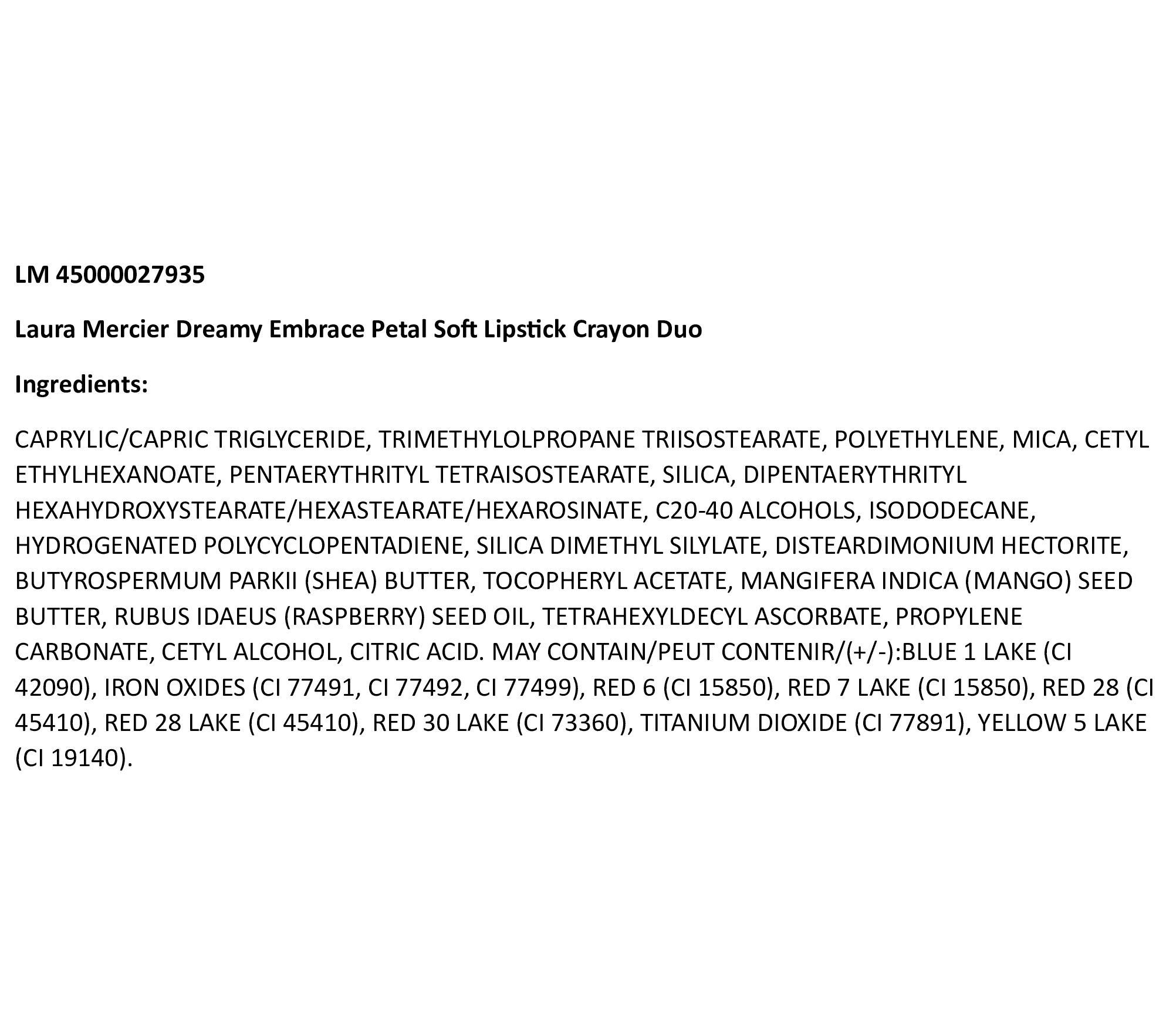 For lips that look and feel petal-soft, Laura Mercier Dreamy Embrace Petal Soft Lipstick Crayon smooths the look and feel of lips for weightless wear. The lip crayon gives an effortless "just bitten" look for diffused, dimensional blurred effect lips.