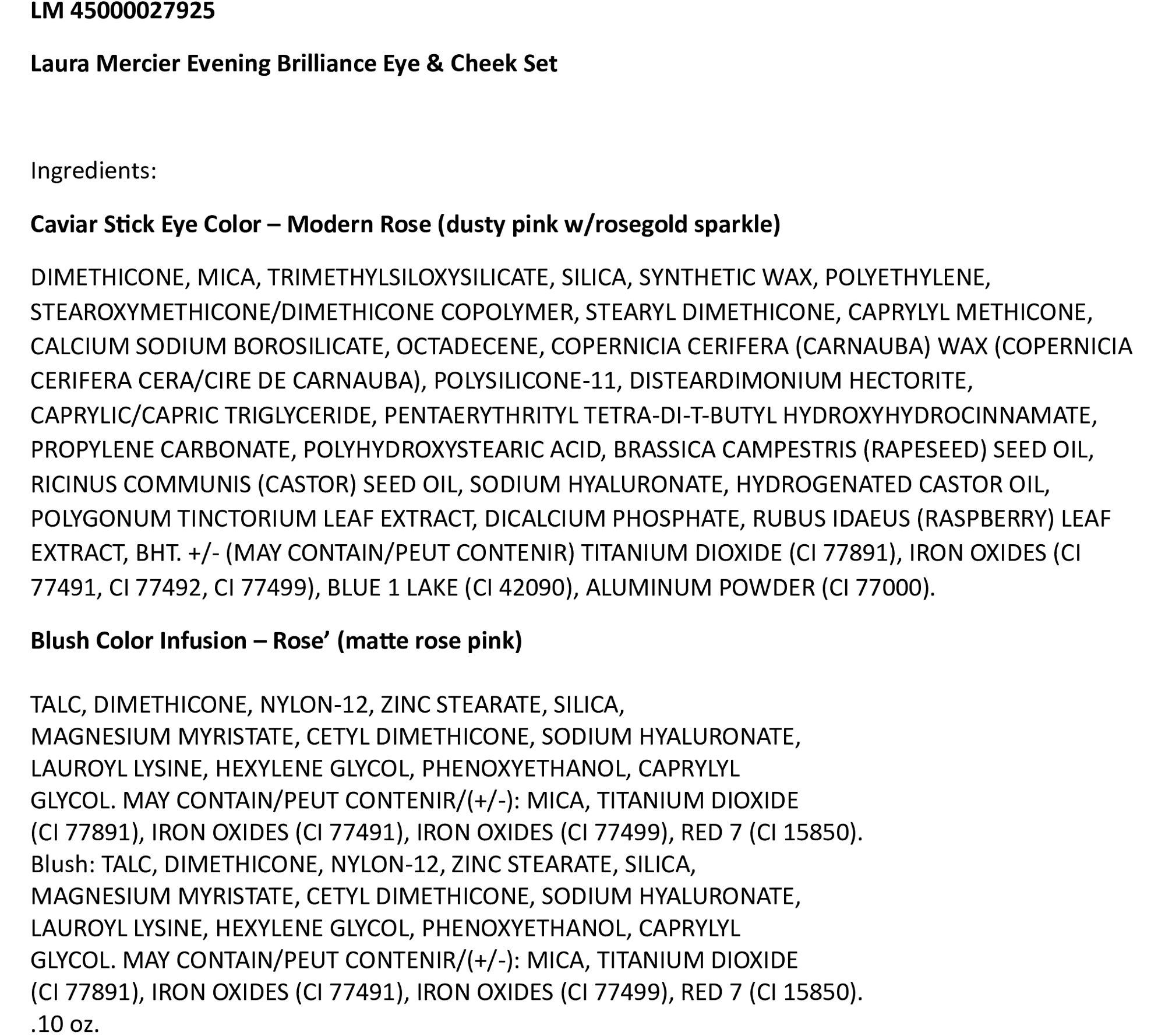 This Laura Mercier eye and cheek set includes a full-size Caviar Stick Eye Color for effortless, easy-to-blend application and mini Blush Color Infusion, a sheer, buildable and silky-smooth cheek color that blends seamlessly with skin for a natural, fresh look.