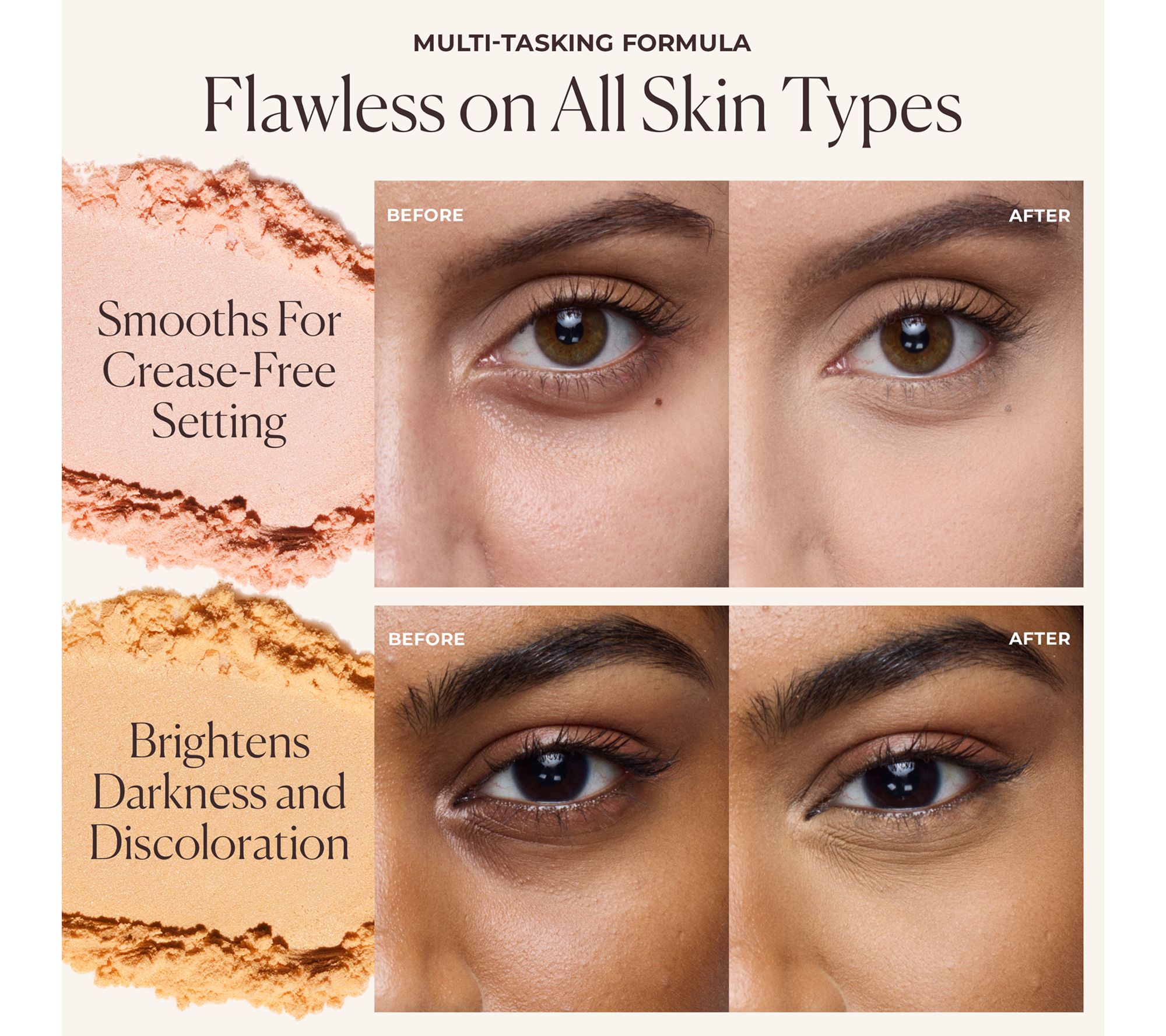 From Laura Mercier, this lighter-than-air powder color-corrects and brightens while setting and extending concealer wear for an instant eye-awakening effect. Formulated with light-reflecting pearls and perfectly calibrated color-correcting pigments, this powder brightens the under eye and corrects discoloration and darkness on every skin tone. Locking concealer in place, this powder smooths the under-eye area, ensuring concealer stays fresh all day. Paired with the Finishing Ponytail Brush, this is the perfect kit for a flawless, awakened under eye.