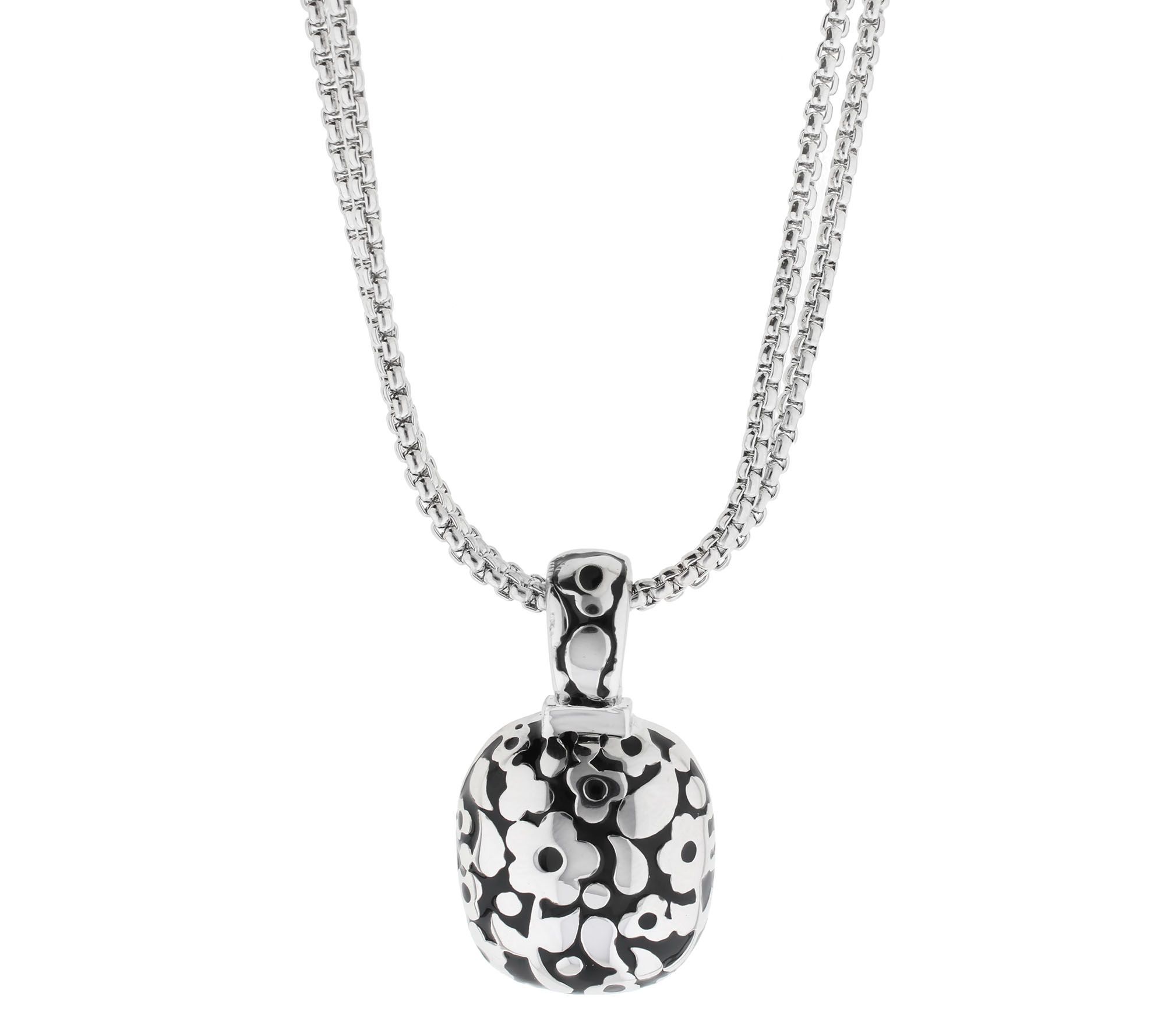 Lauren G Adams Silvertone Enamel Floral Pendantwith Chain