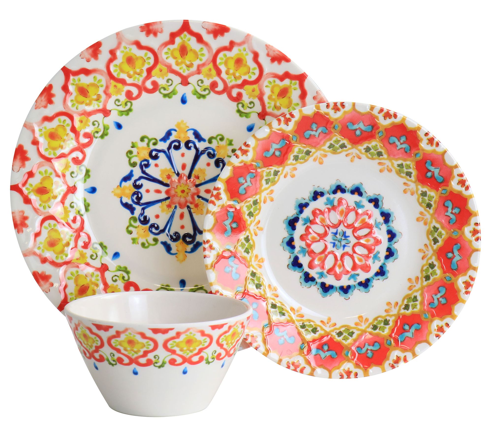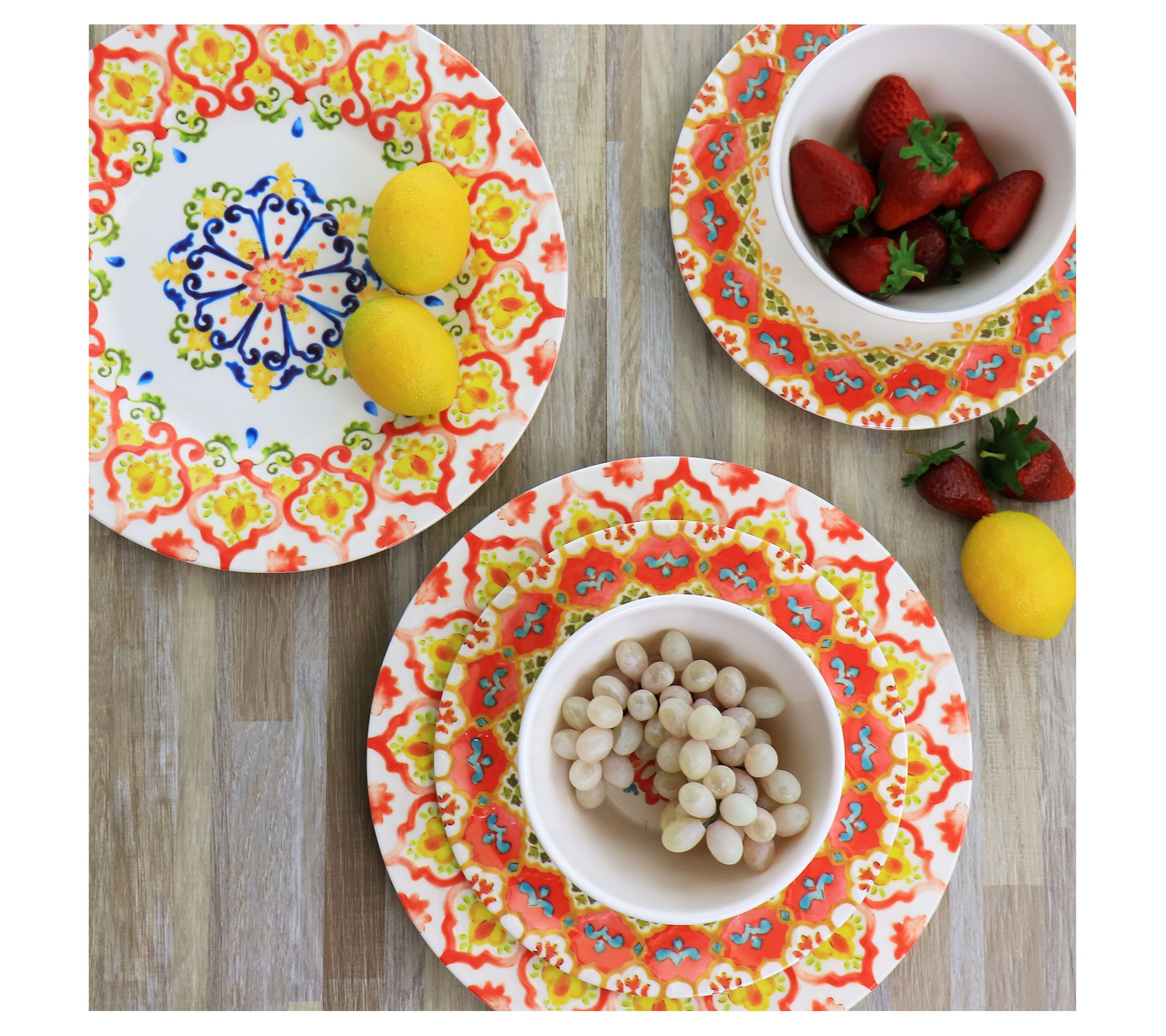 Turn any meal into a party with the bright and cheery Tamayo dinnerware set. It's constructed from lightweight melamine so it's perfect for dining both indoors and out. From Laurie Gates.