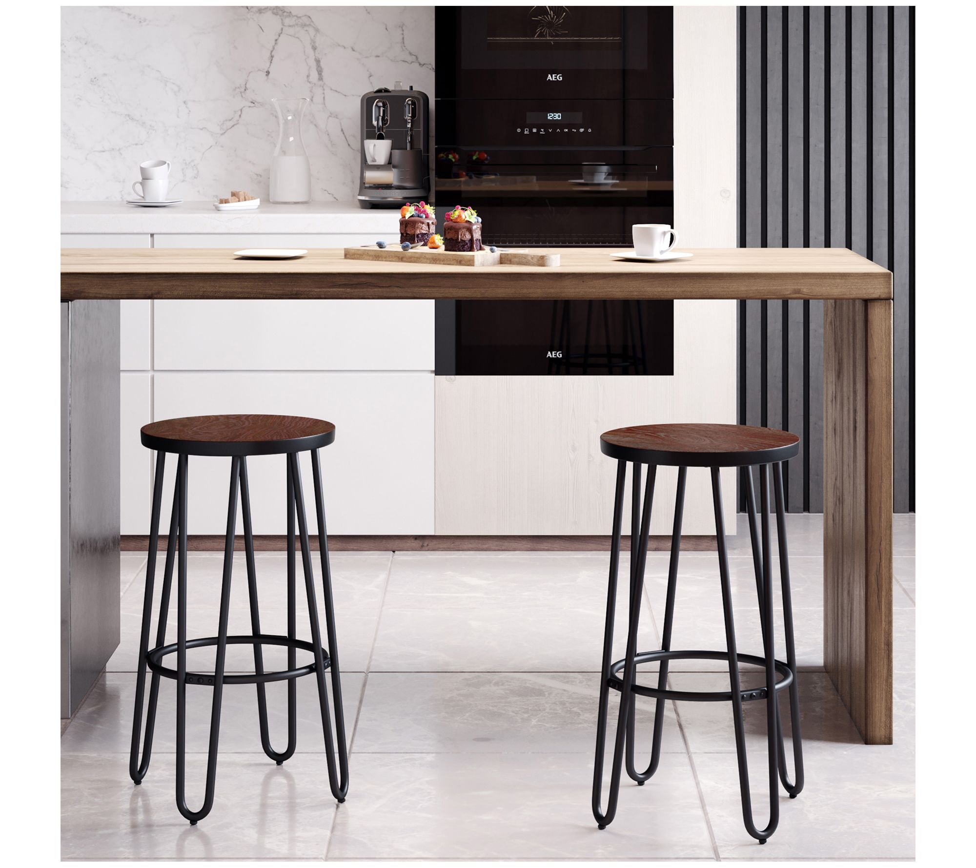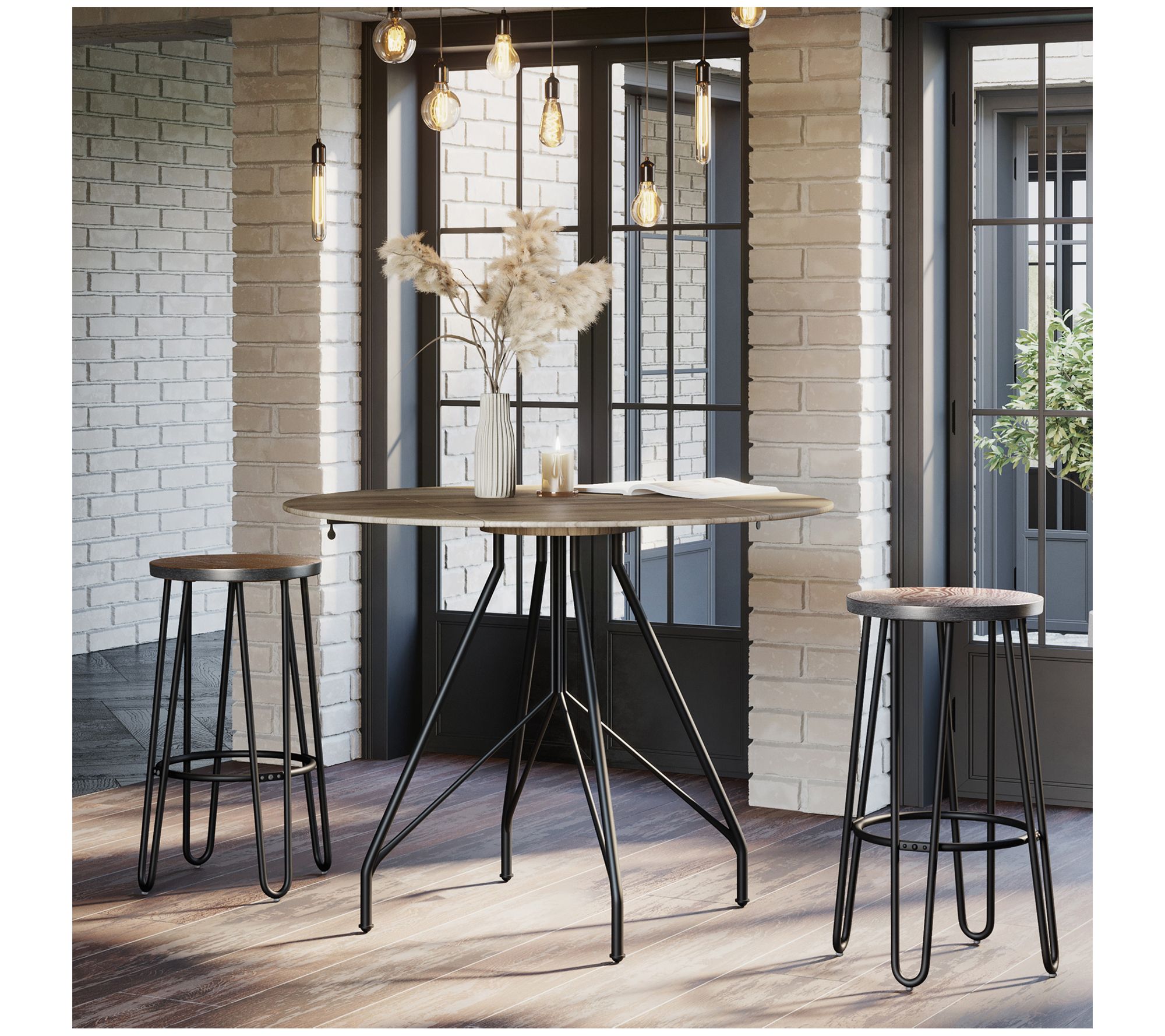 Lend industrial appeal to your bar or breakfast nook with these throwback counter-height stools boasting sleek and airy hairpin legs. From Lavish Home.
