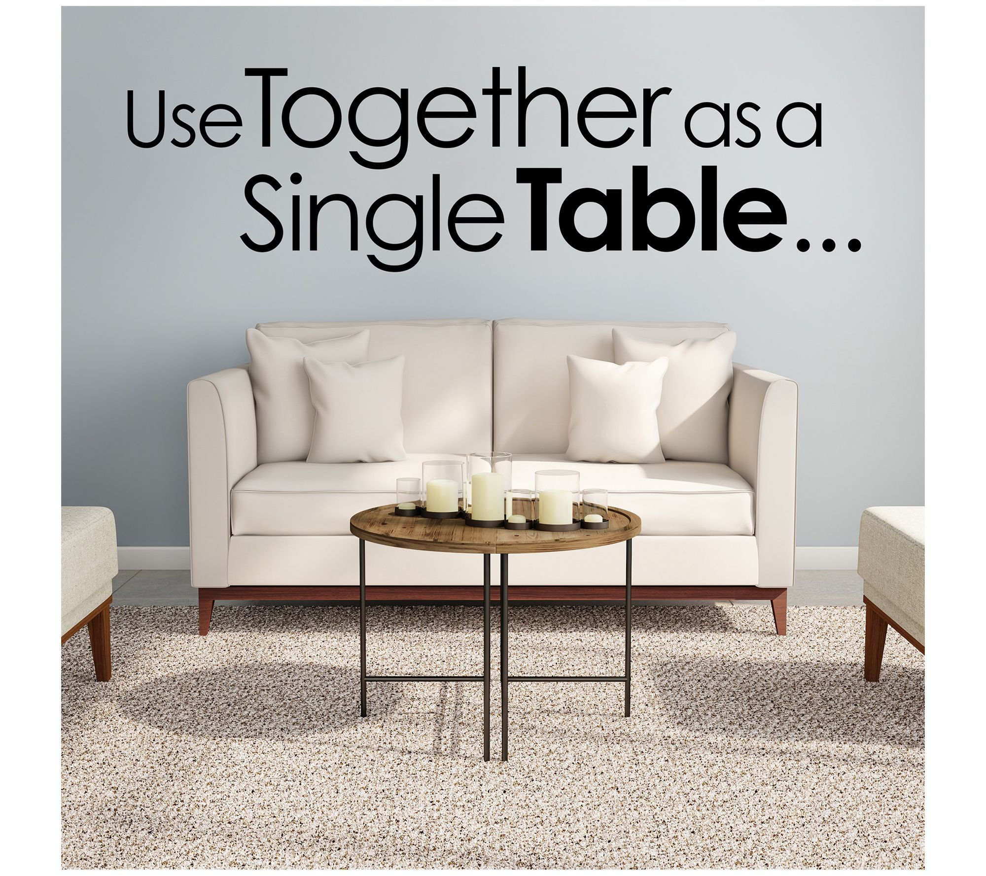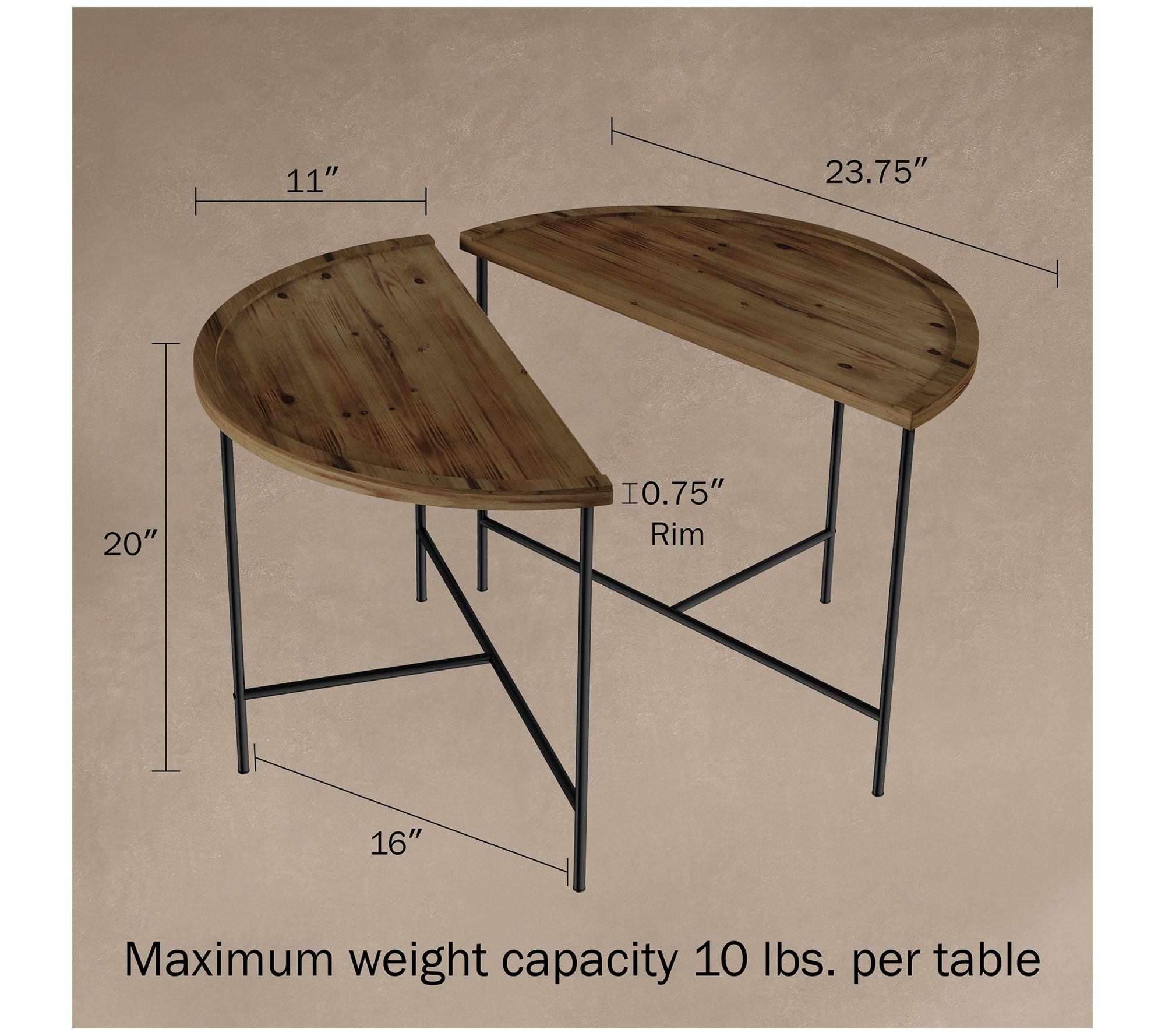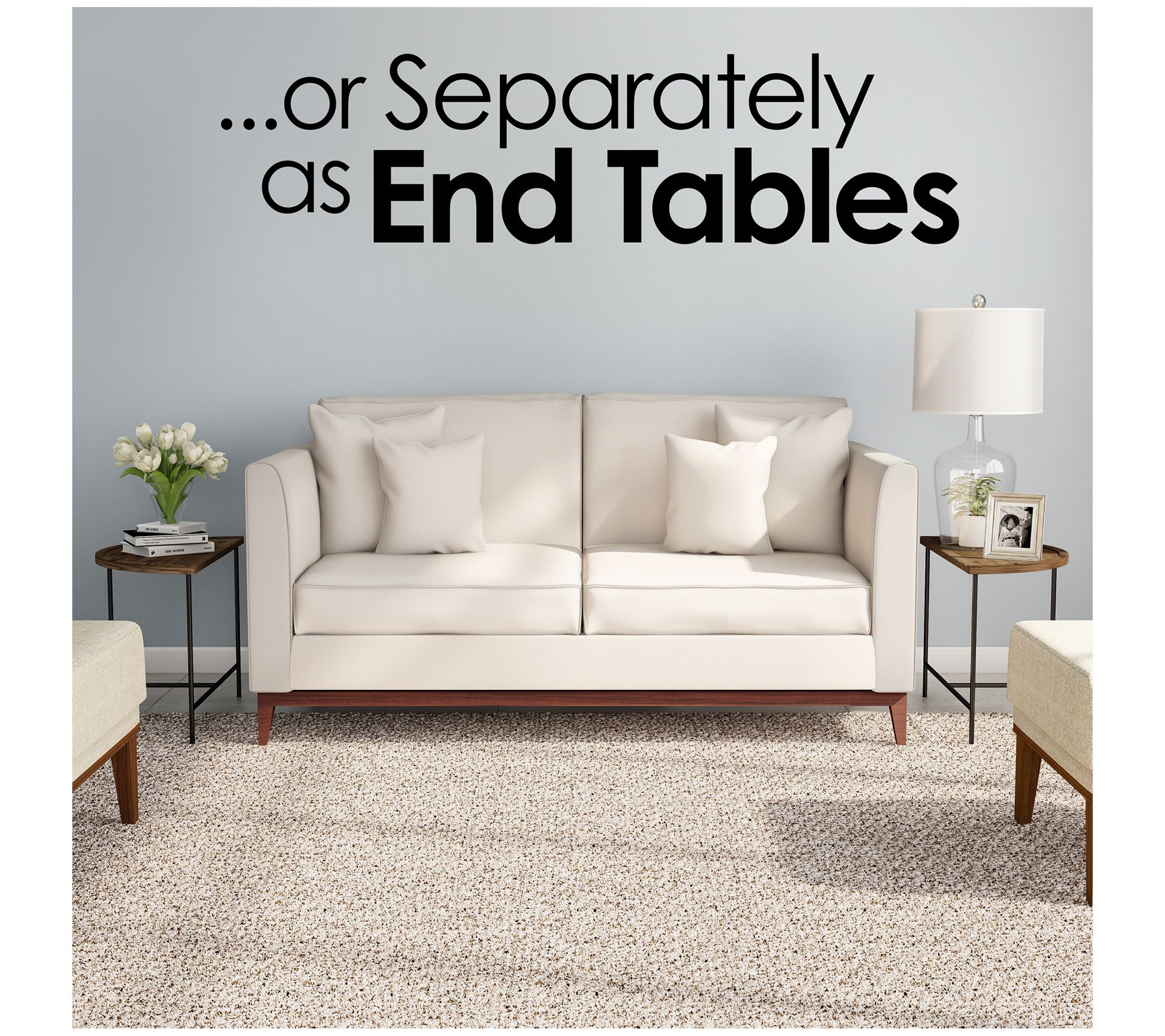• Includes two half-moon coffee tables and assembly hardware