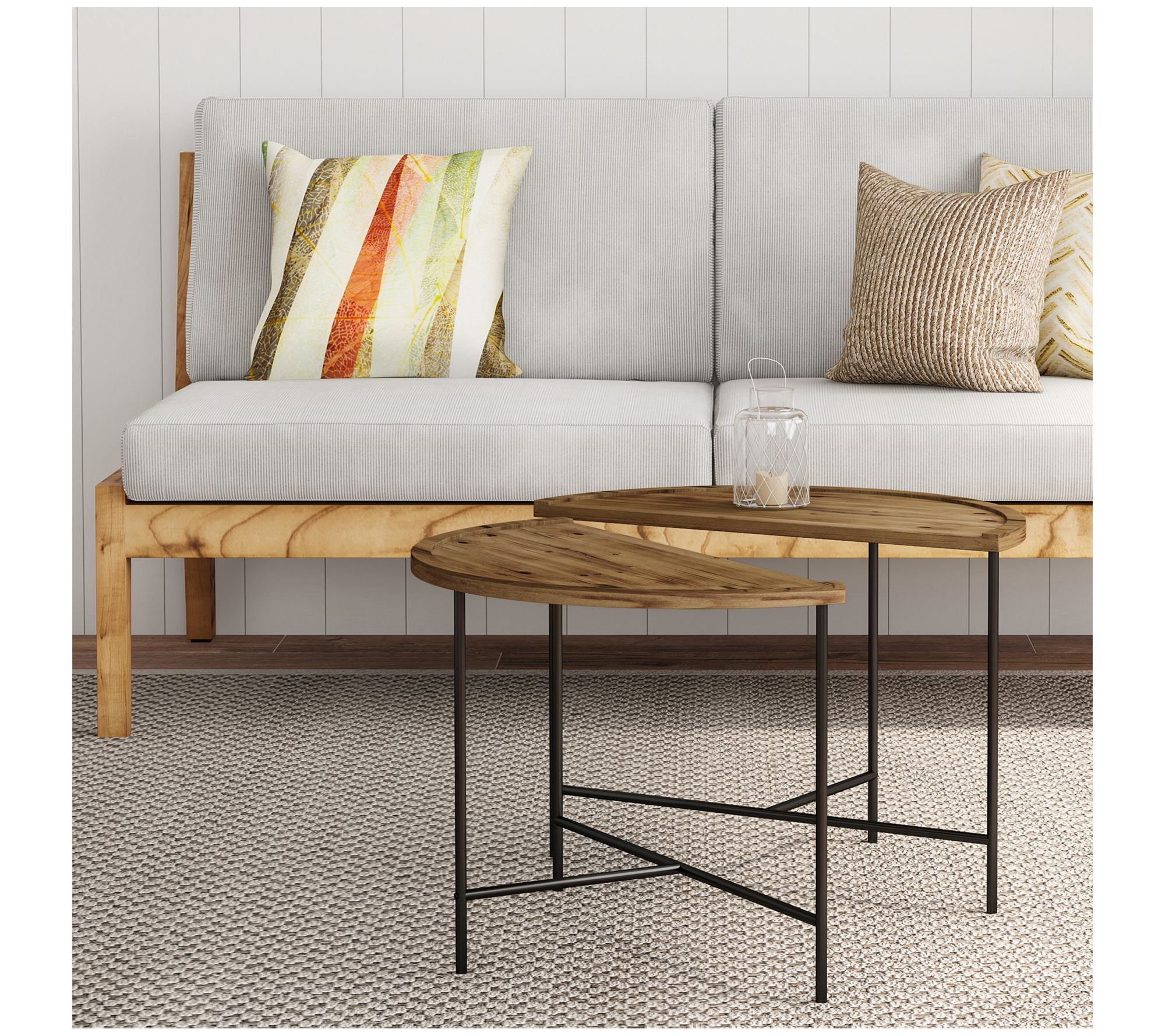 Give your home a touch of modern rustic style with these two half-moon coffee tables featuring a simple and sleek look that looks great in your living room. From Lavish Home.