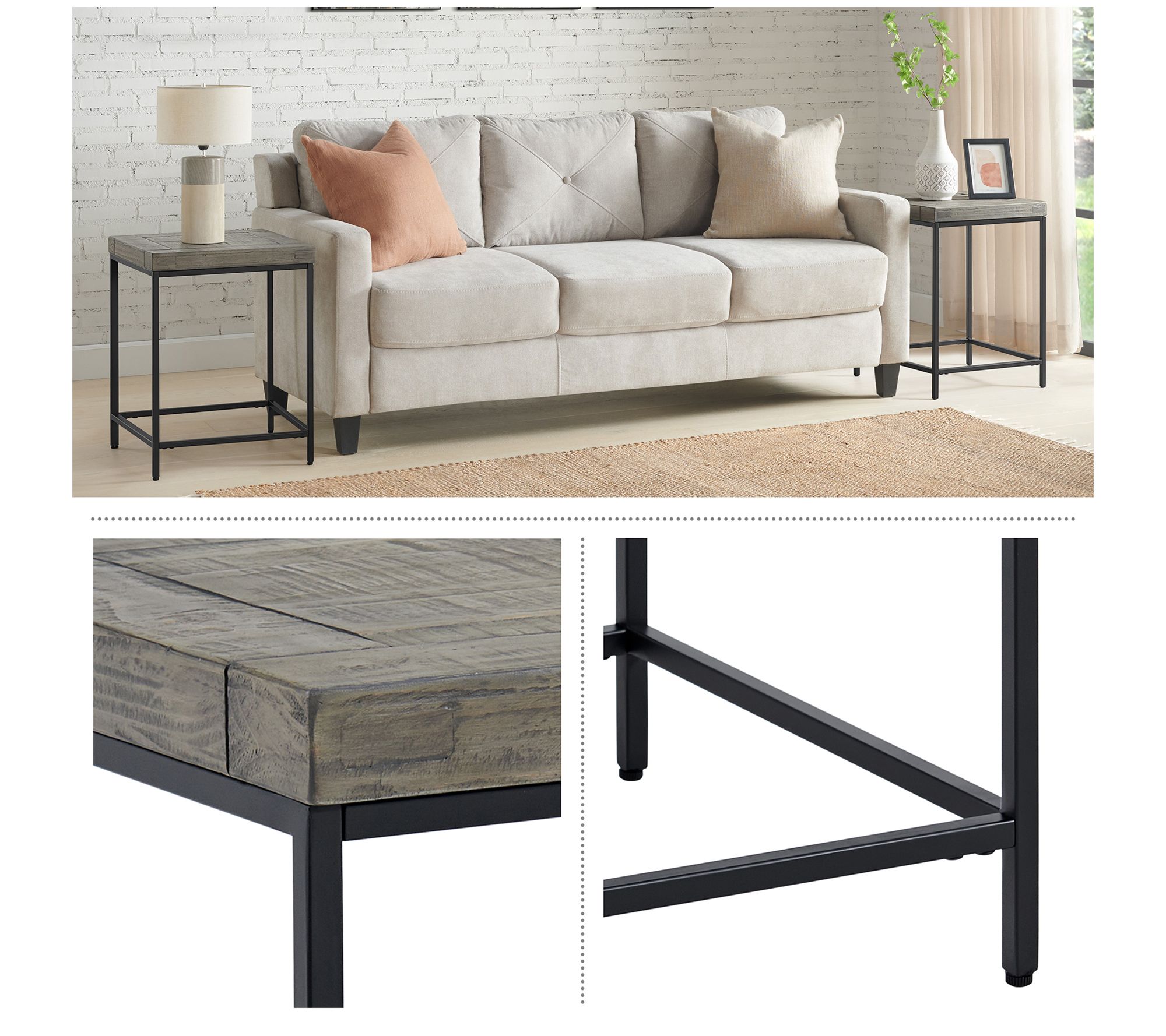 Provide extra space to decorate your home with this set of industrial side tables constructed with open metal frames and solid wood tops. From Lavish Home.
