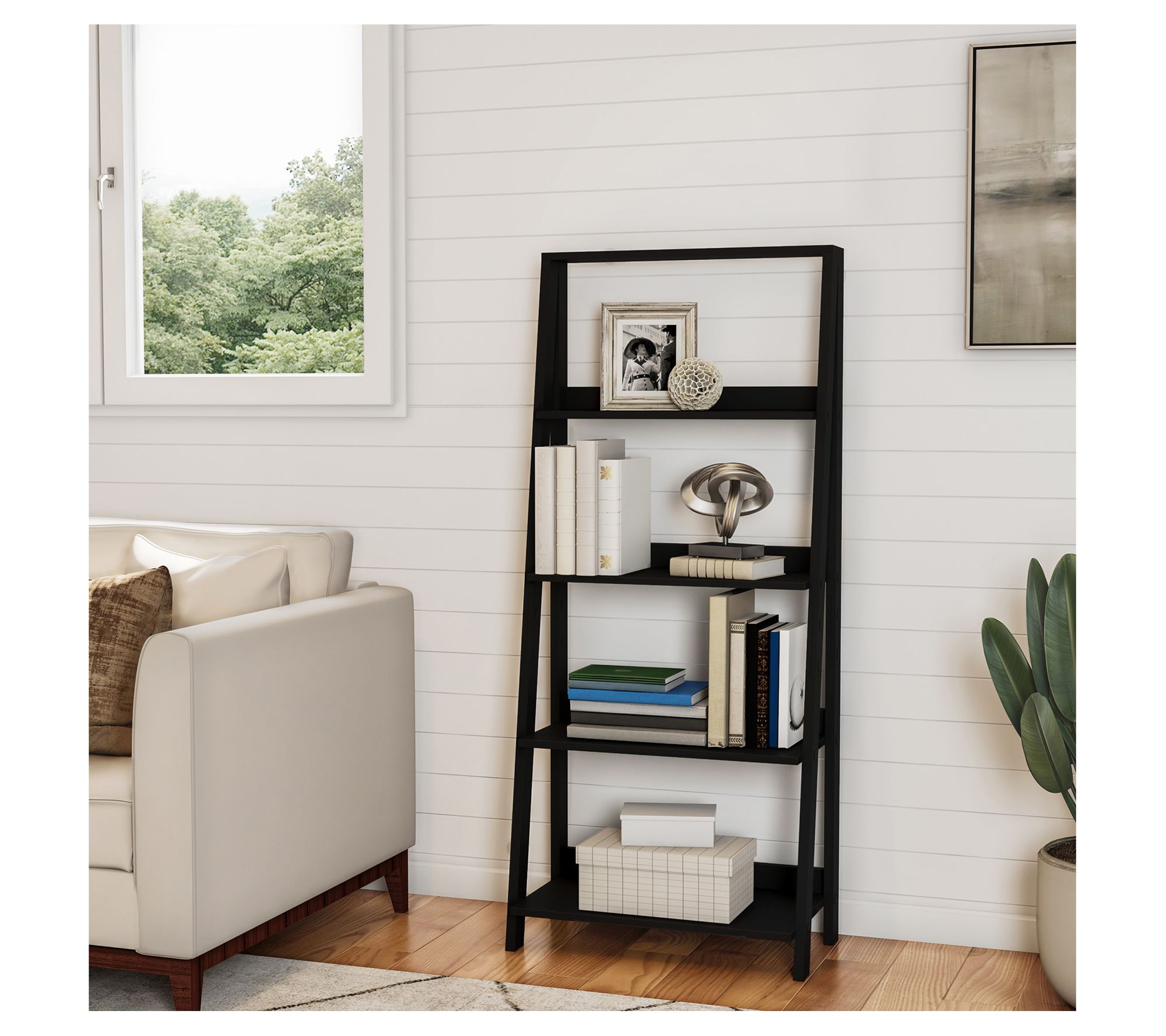 With a functional design and clean lines that fit seamlessly into contemporary spaces, this four-tier ladder bookshelf provides the perfect platform for displaying books, knickknacks, framed photos and more. From Lavish Home.