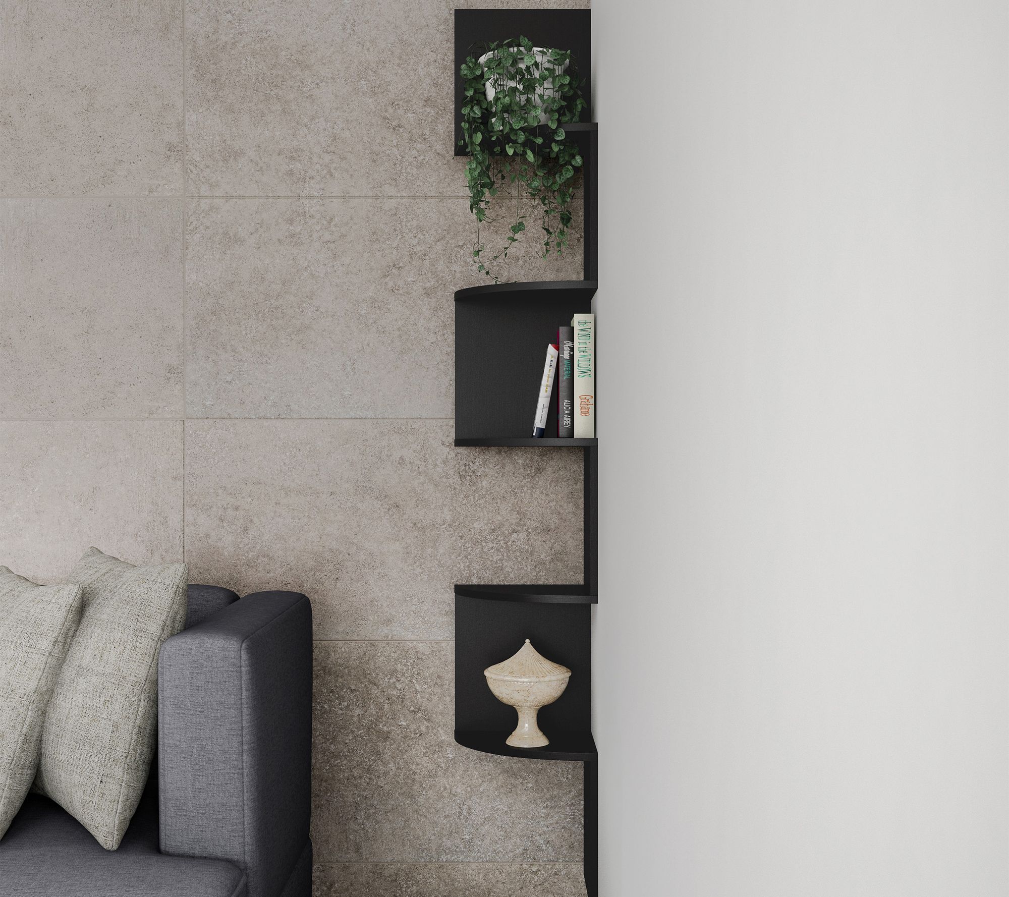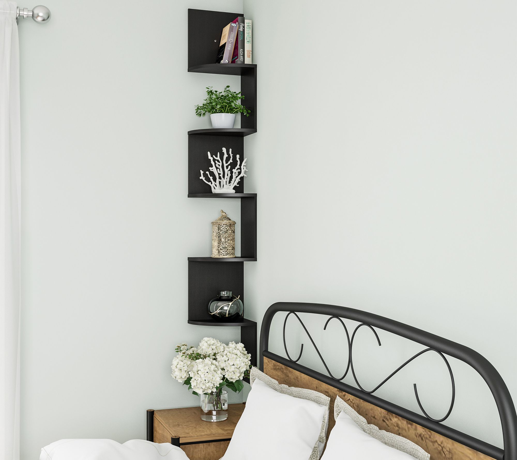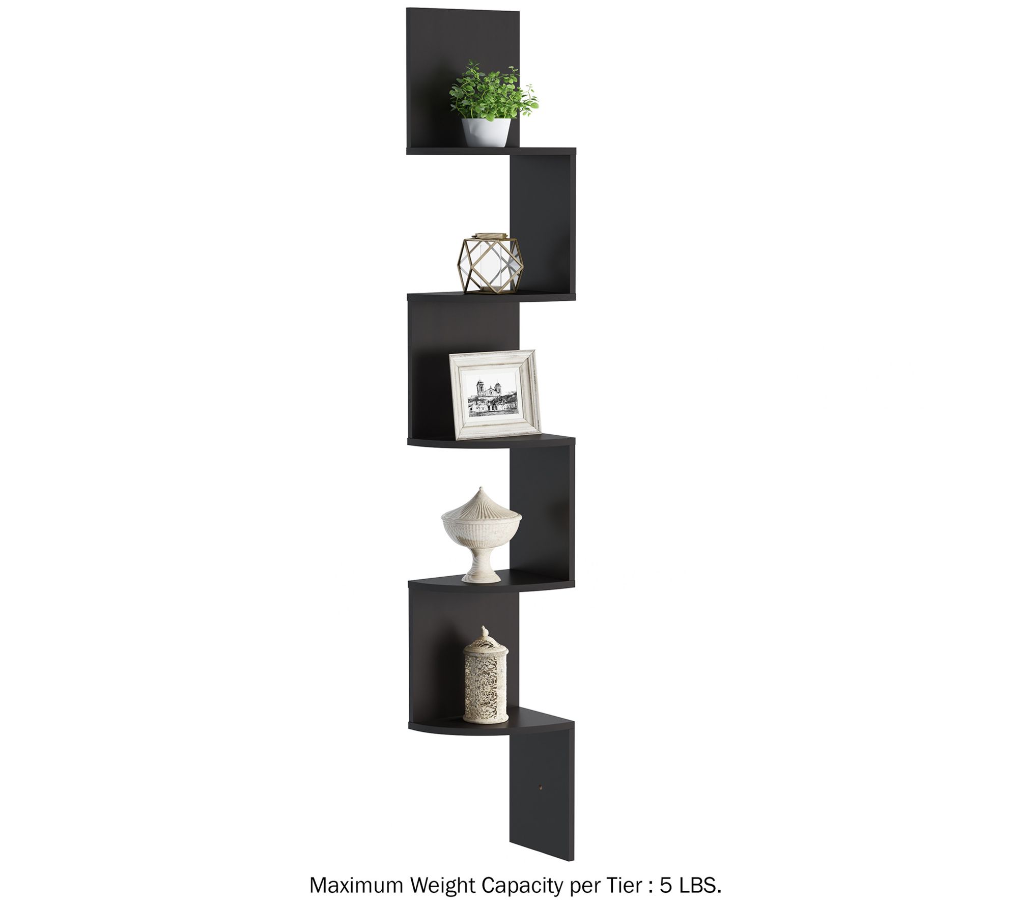 Style and function align with this five-tier corner wall shelf. Adding life to an empty wall corner, you can display your favorite books, accents, plants, and more. From Lavish Home.