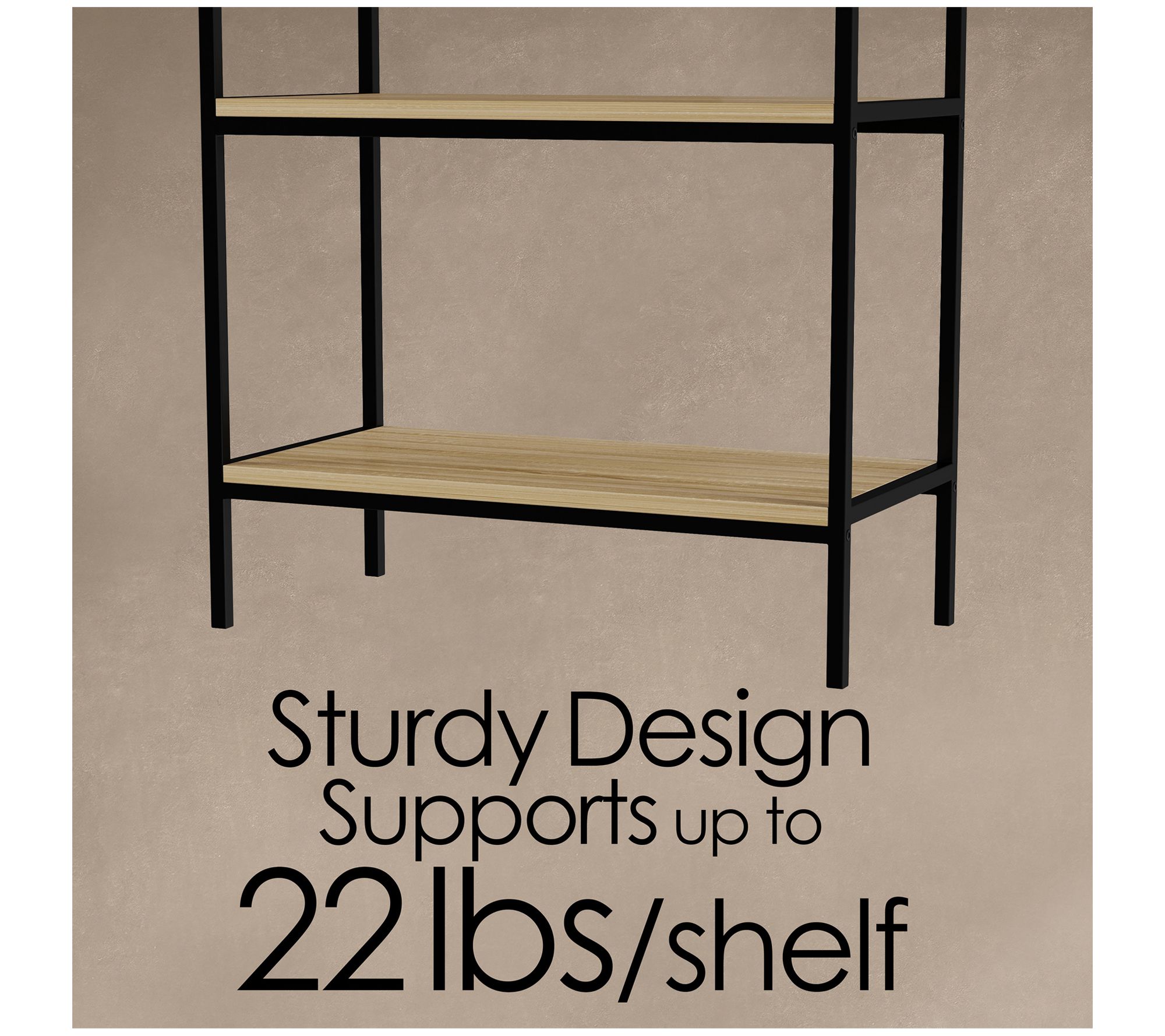 • Measures 23.75"L x 11.75"W x 56.75"H; supports up to 110 lbs (22 lbs per shelf)