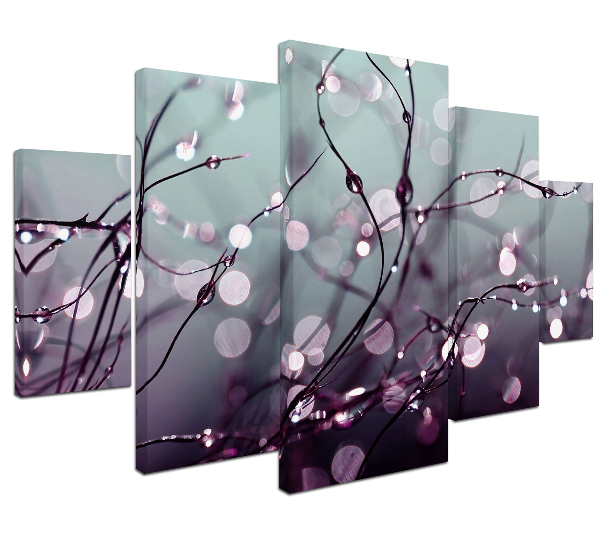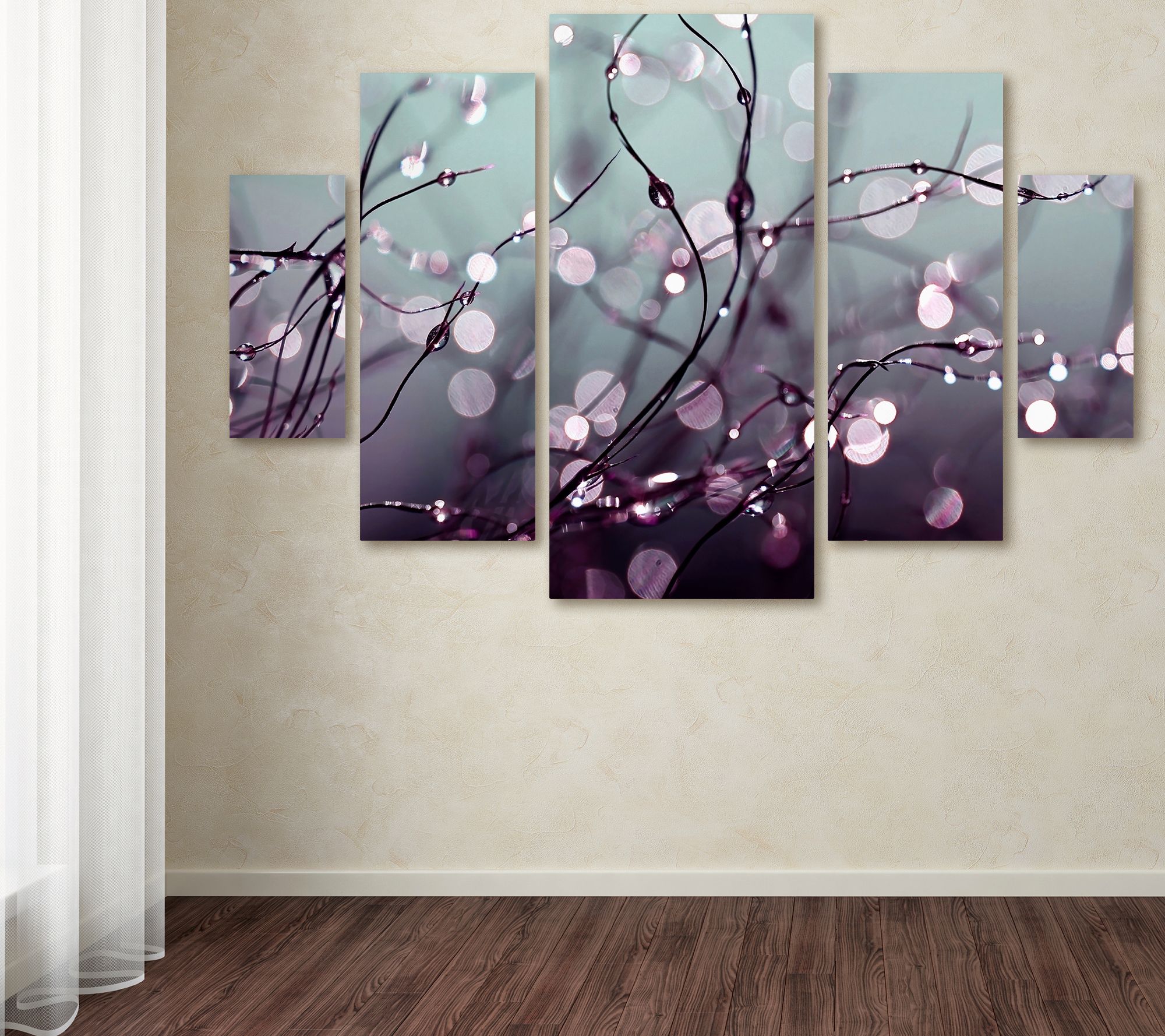 Create a mesmerizing focal point in any room with this five-piece print of raindrops dancing off tree branches by photographer Beata Czyzowska-Young. From Lavish Home.