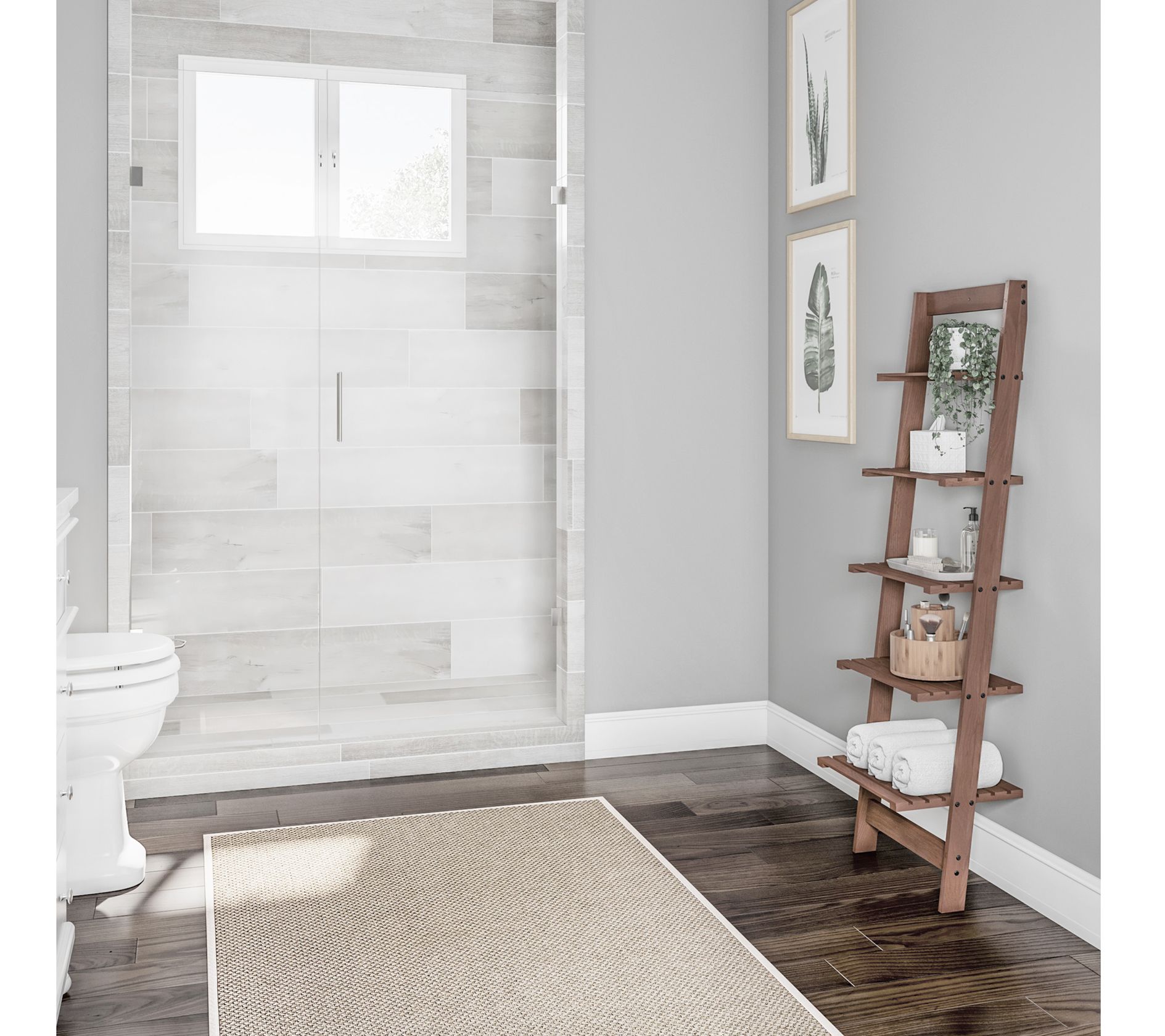 Perfect for adding a chic finishing touch to your living room decor, this compact ladder shelf works equally well as a plant shelf for your mudroom, a small bookshelf for your study, or a display shelf for your bedroom. Alternatively, put these five shelves to good use organizing pantry goods in kitchens with modern farmhouse decor or keeping towels and toiletries at the ready in your bathroom. From Lavish Home.