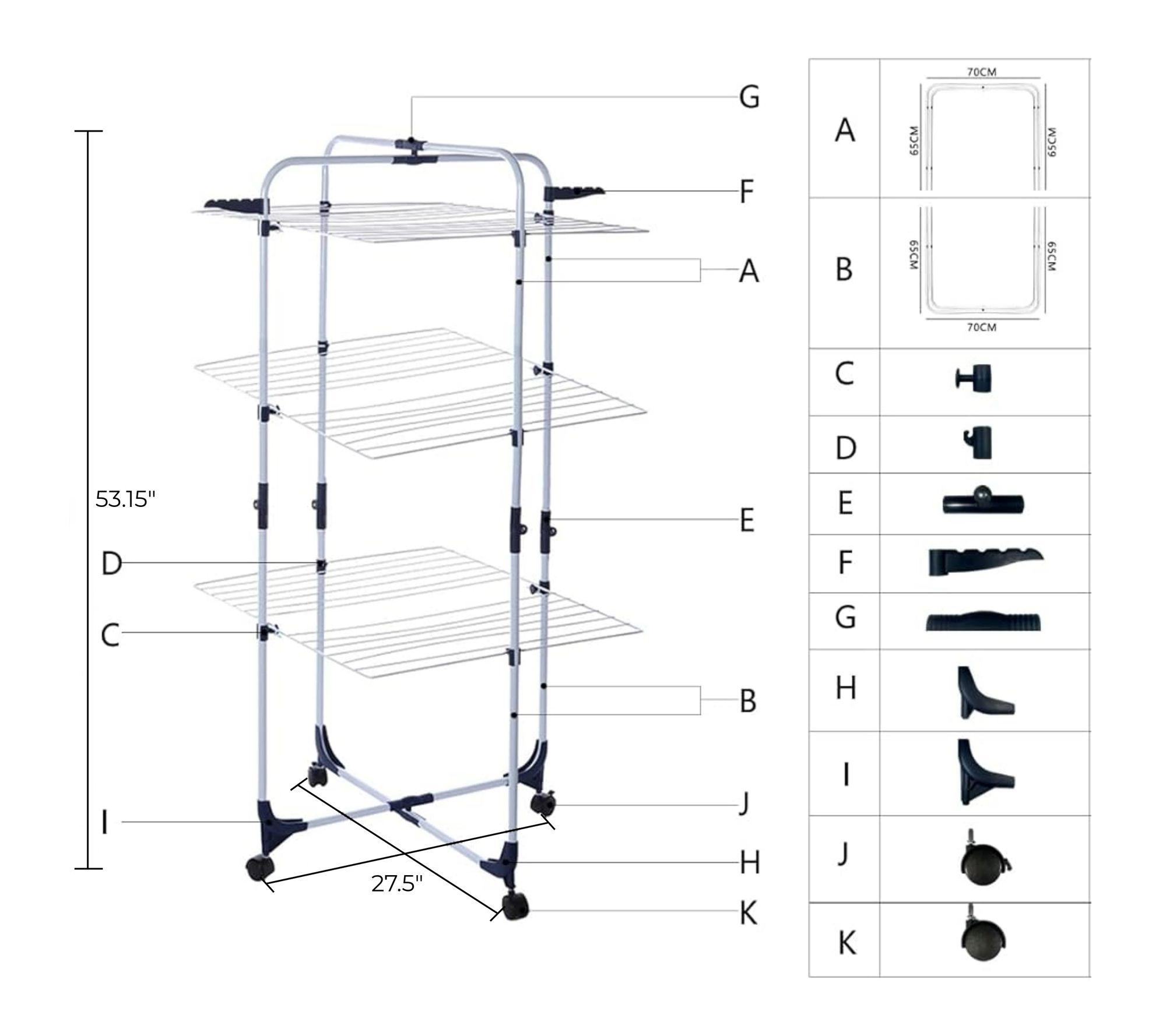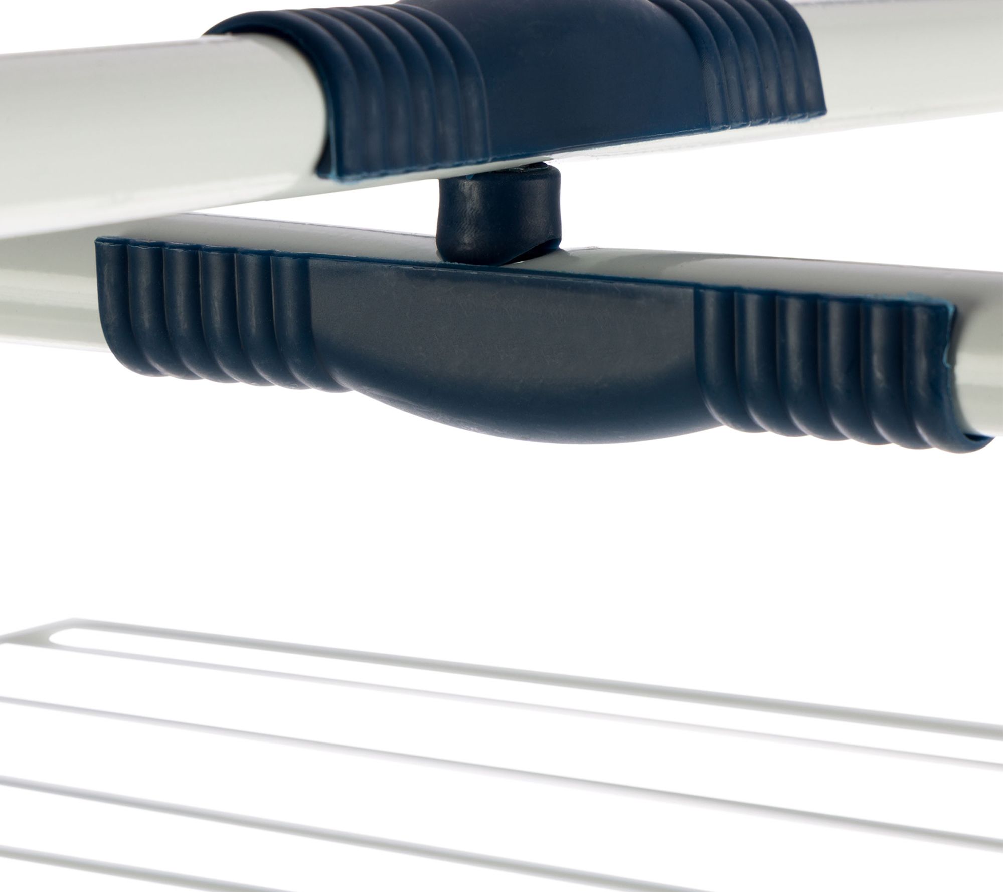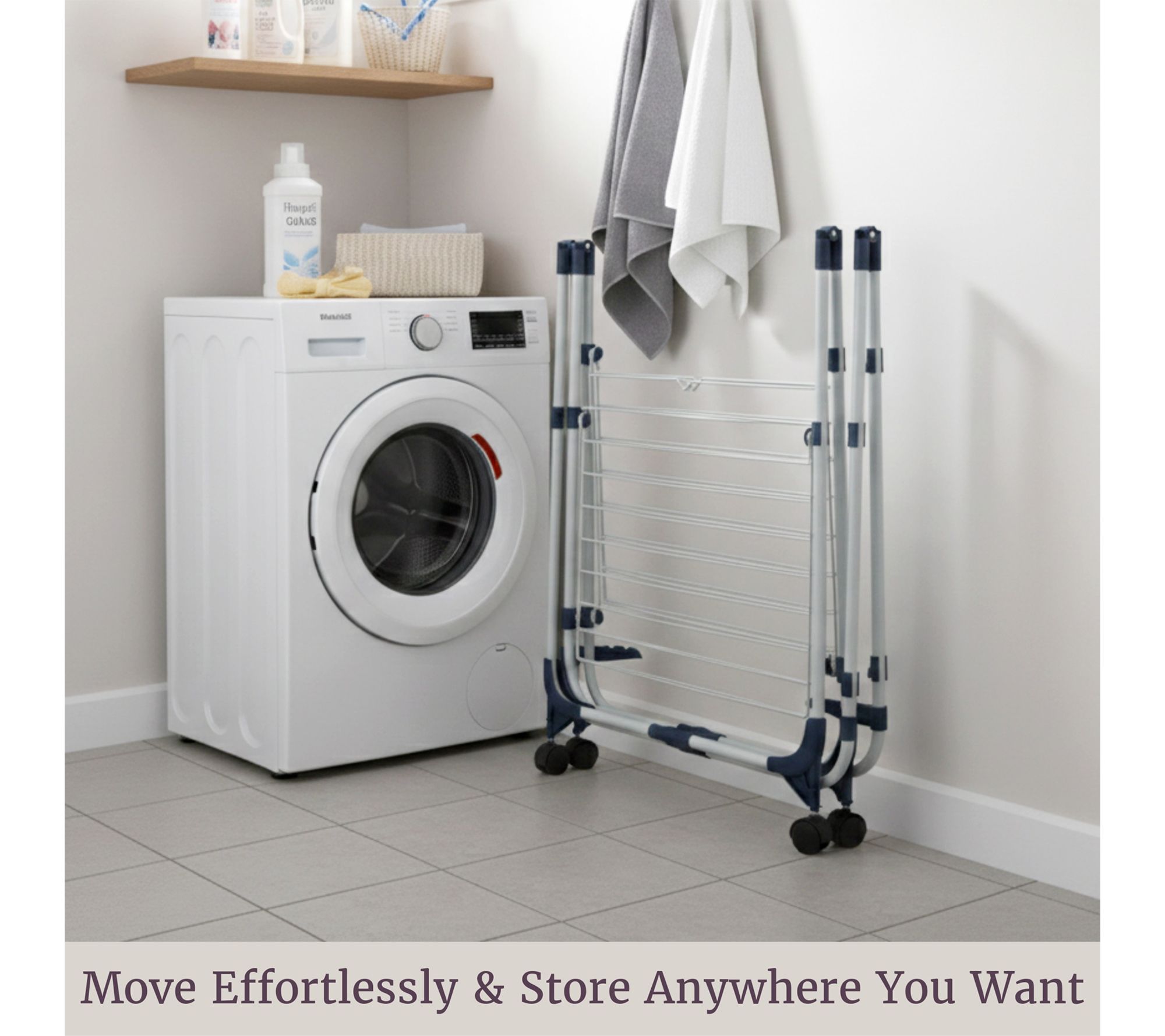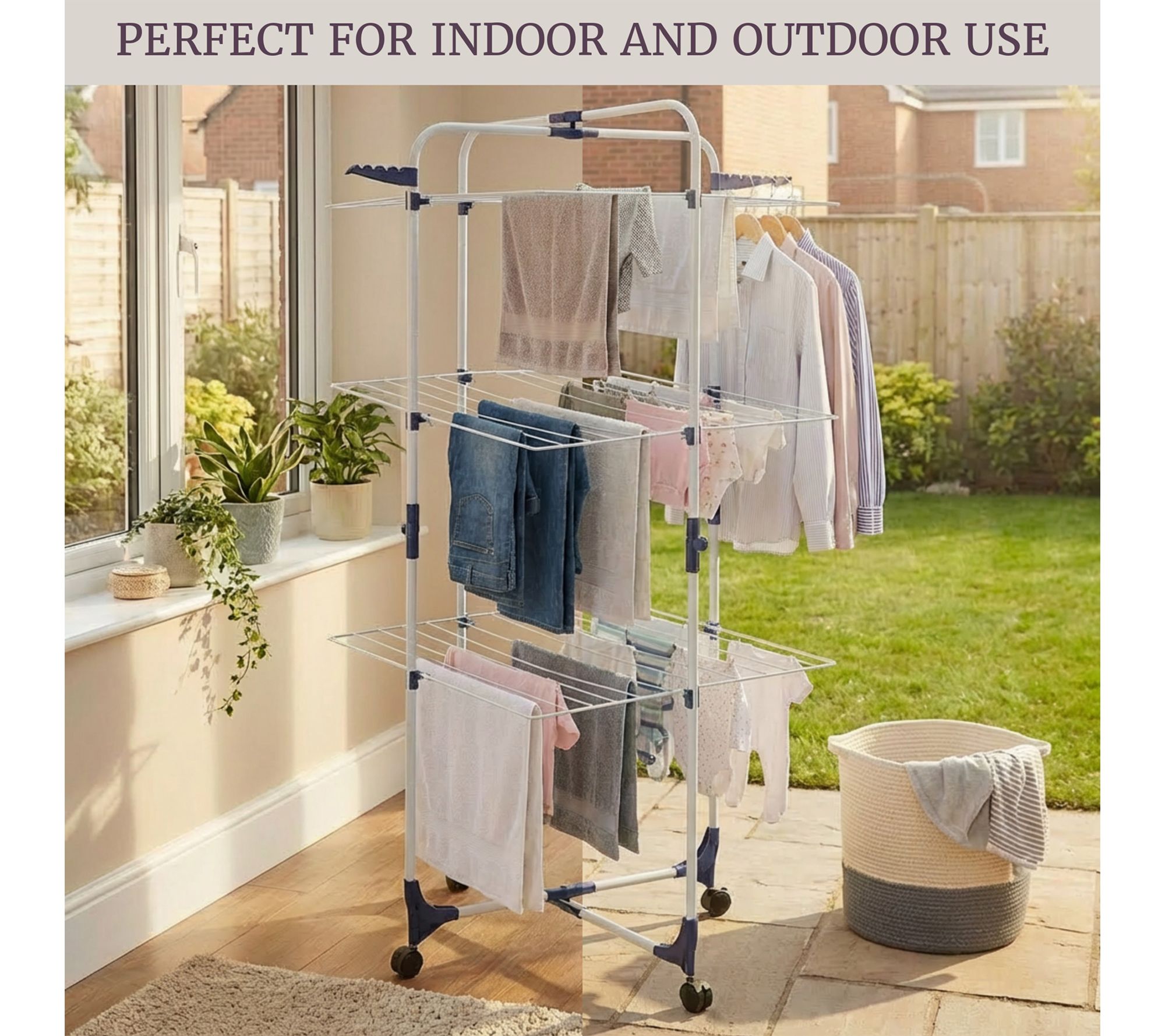 Tackle laundry day with ease thanks to this three-tiered clothes drying rack. Whether airing out delicate blouses or hanging bulky towels, the sturdy powder-coated steel structure resists rust and rolls smoothly from room to room on caster wheels. Savvy collapsible shelves make storing this compact laundry station a breeze, freeing up space in tight quarters. From Lavish Home.