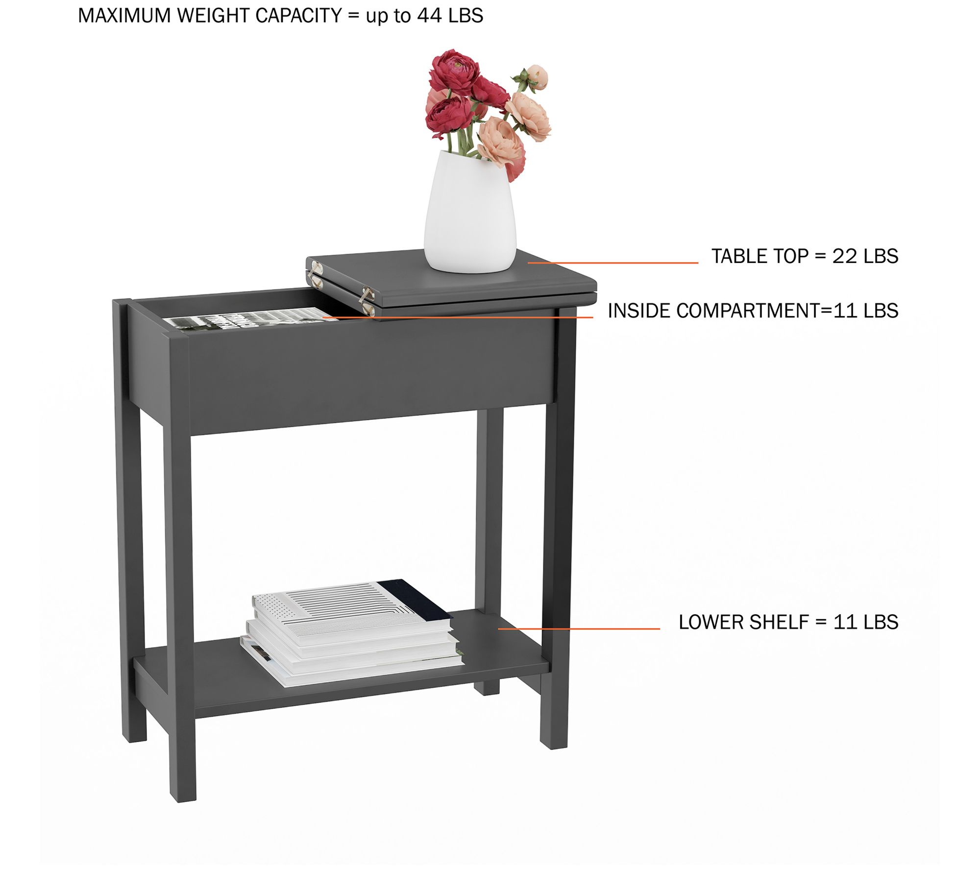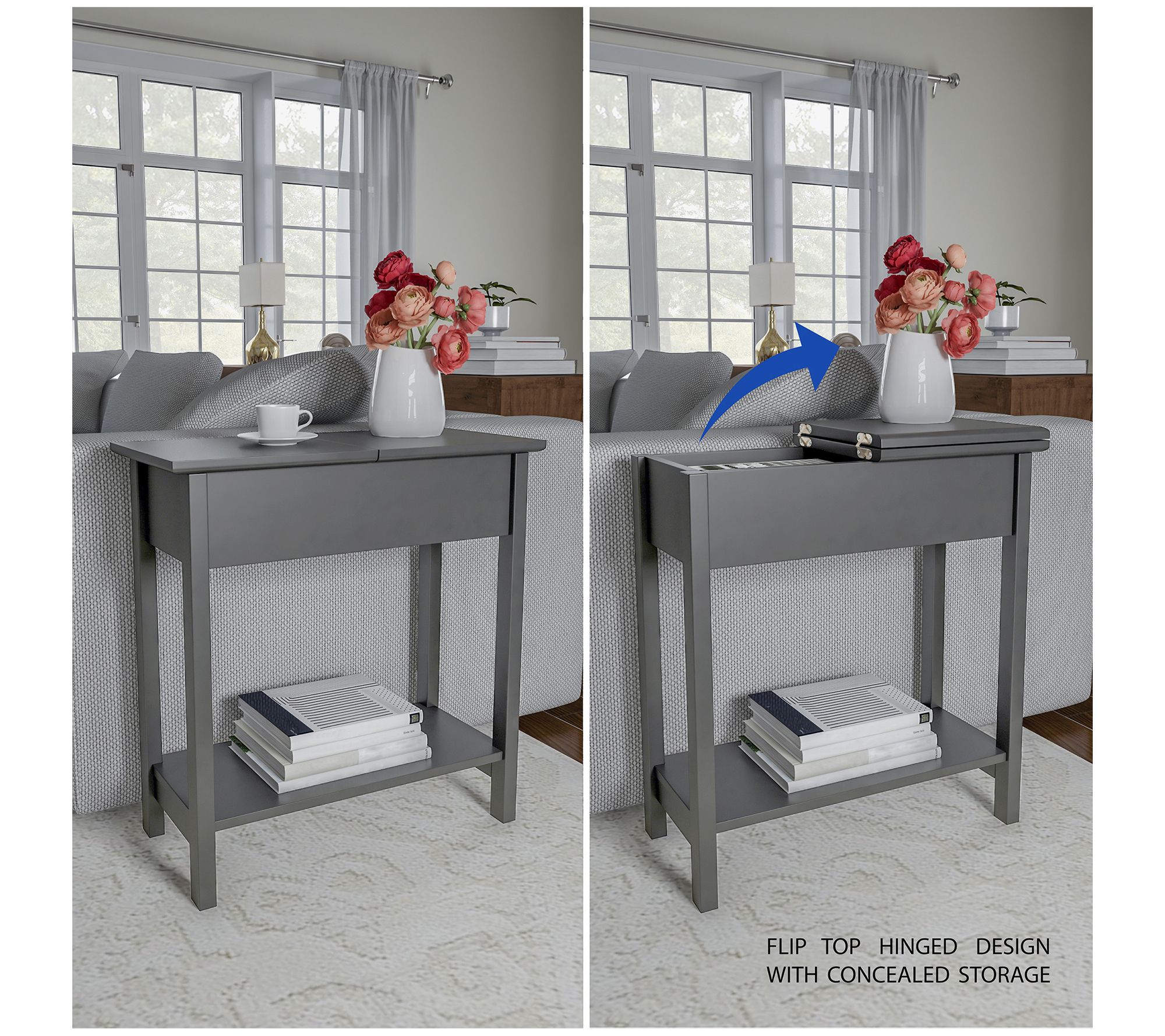 Lavish Home Flip-Top End Table Slim Side Console with Storage