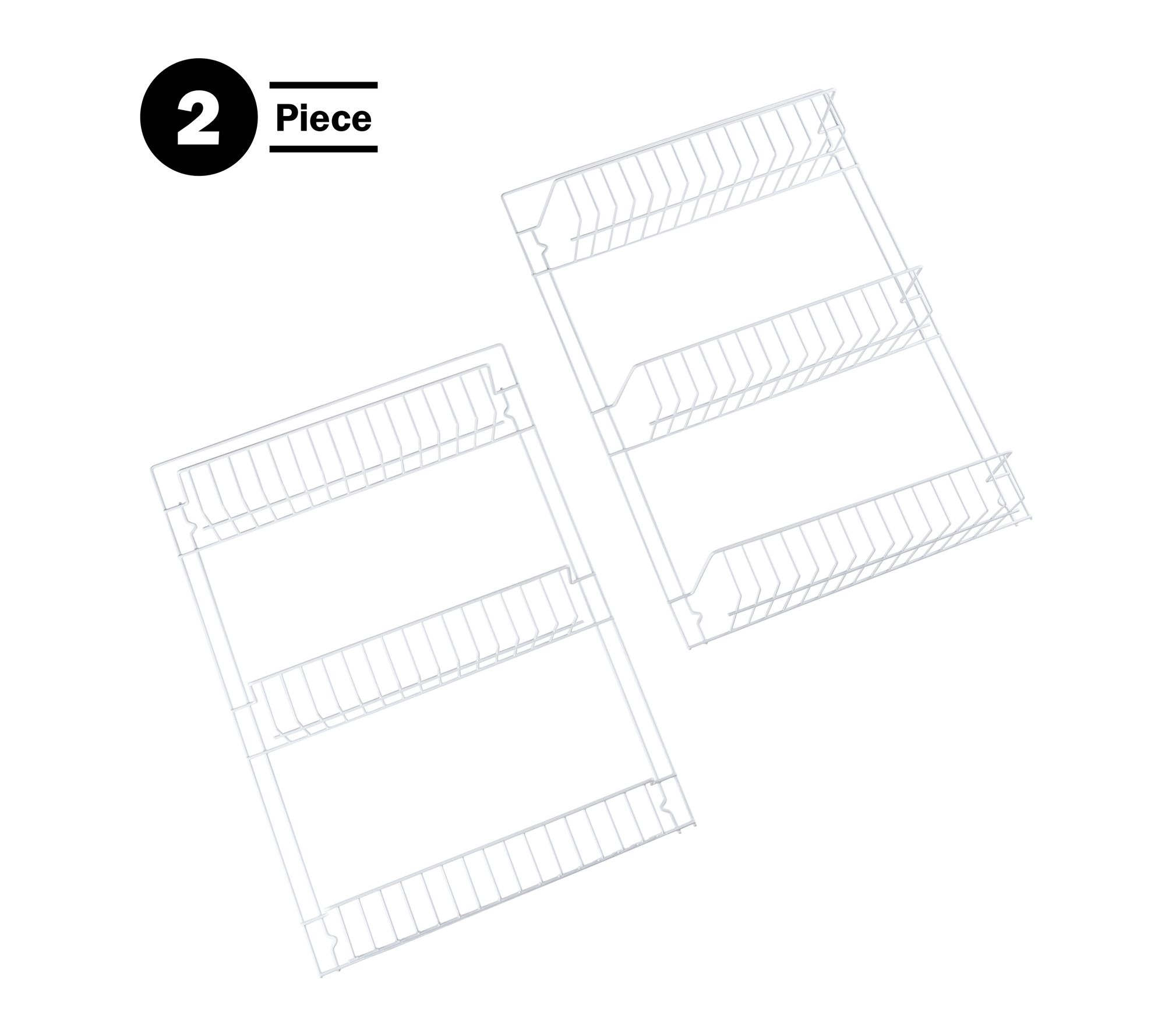 • Two-piece design features two 3-tier units that can be used separately or linked together for a 6-tier organizer