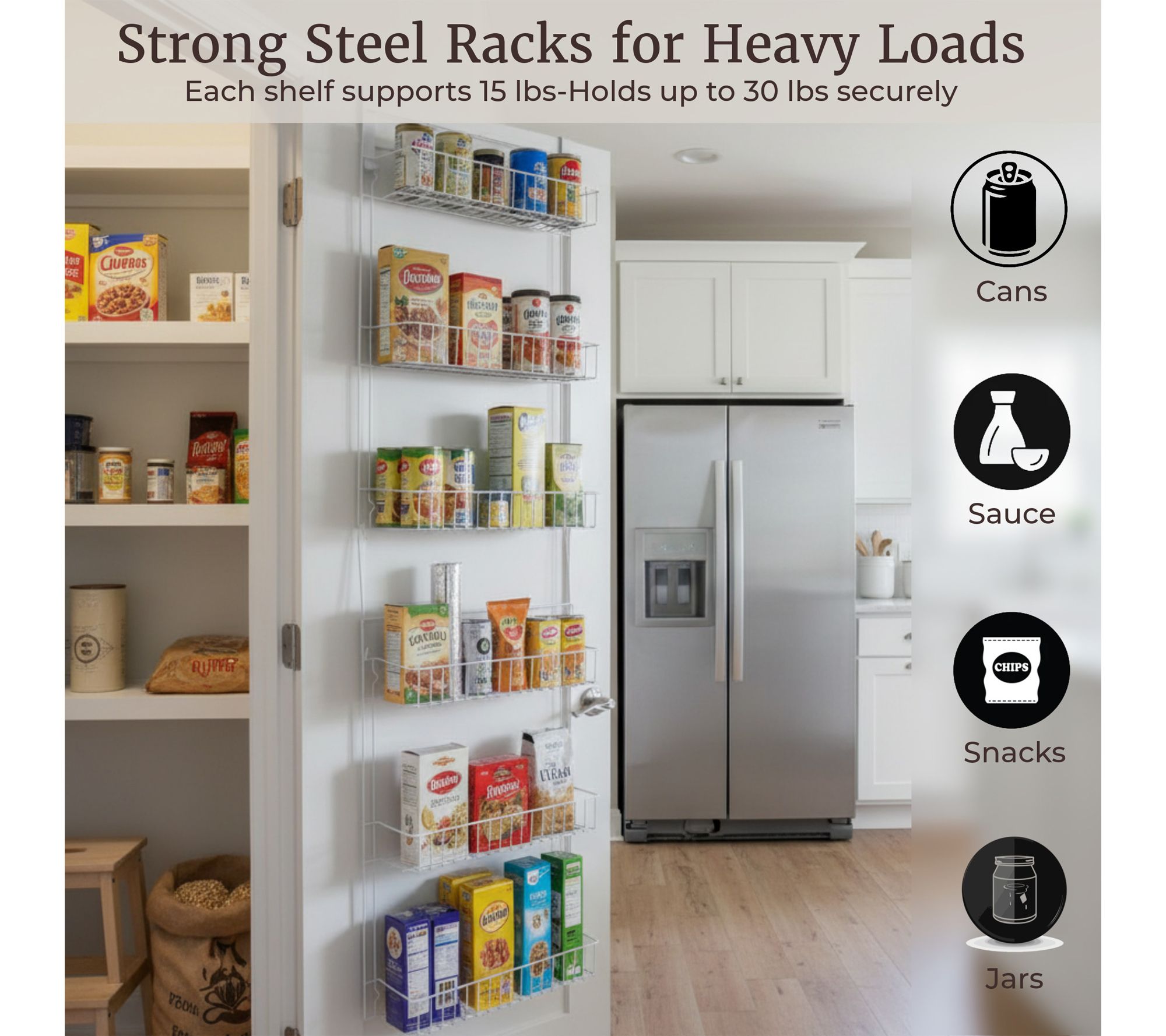 • Each rack supports up to 15 lbs, for a total weight capacity of 30 lbs