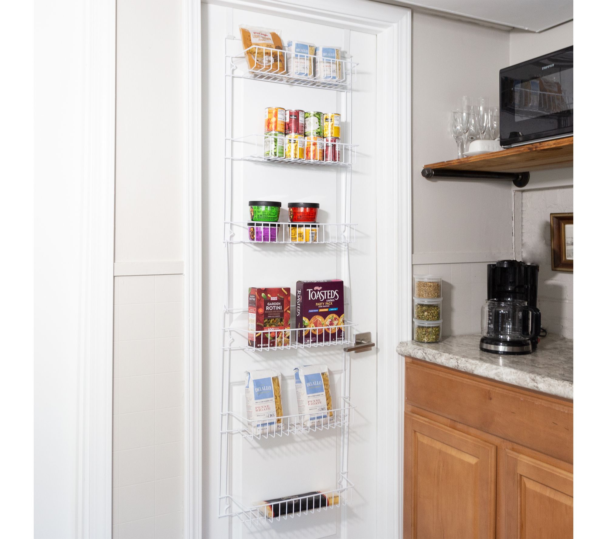 Tackle clutter and reclaim valuable space with this over-the-door organizer by Lavish Home. Six adjustable tiers of shelving provide ample room for everything from pantry staples and cleaning supplies to towels and craft materials, turning any door into a tidy storage solution. Use in laundry rooms, kitchens, bedrooms, or even garages for instant organization -- and enjoy how easy it is to install and customize to fit your needs. From Lavish Home.