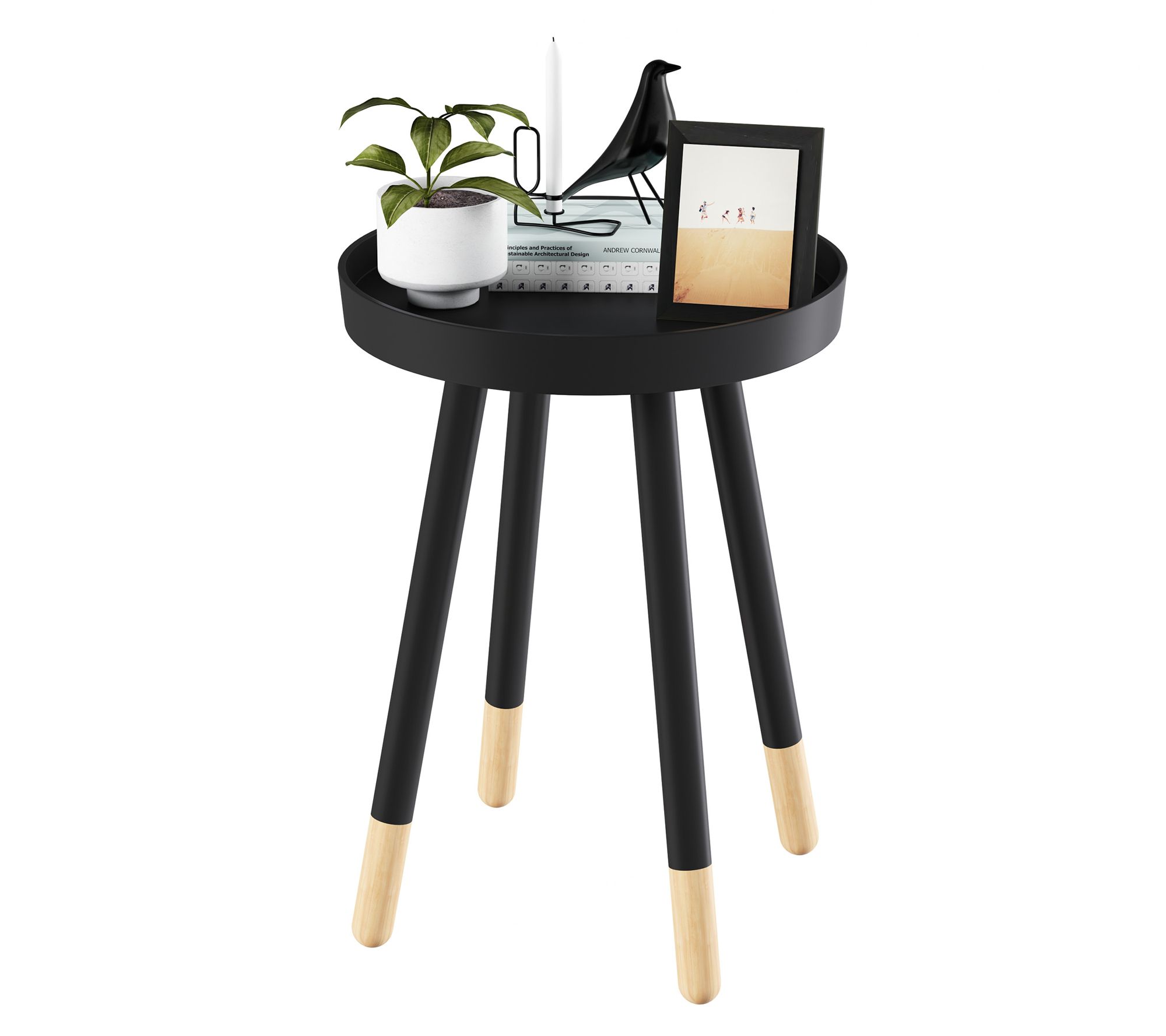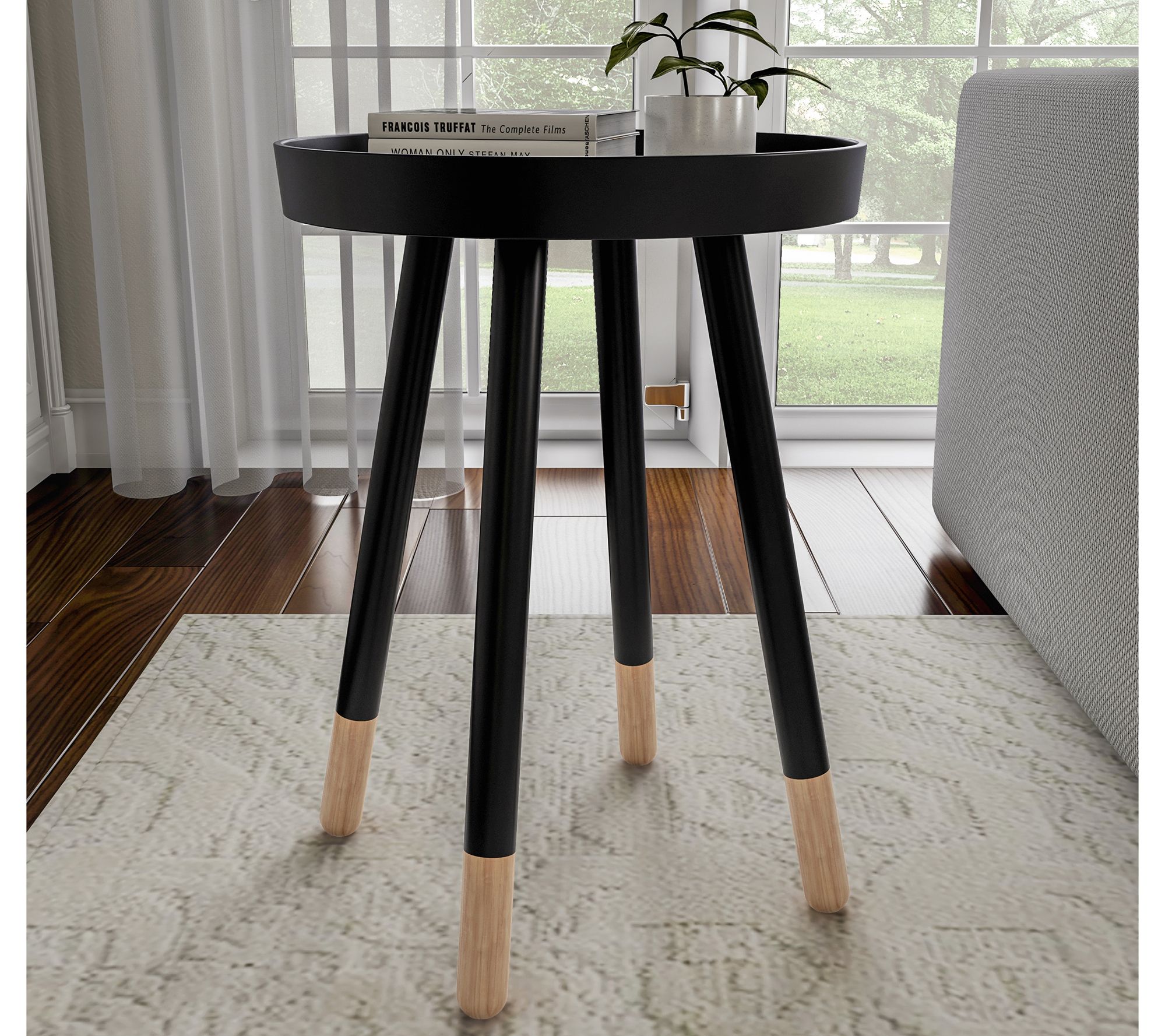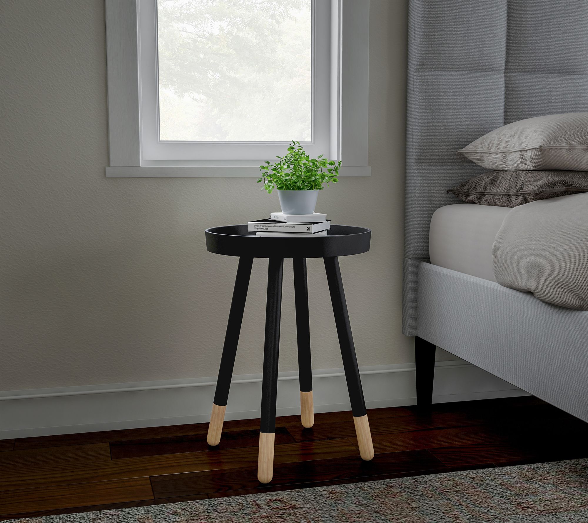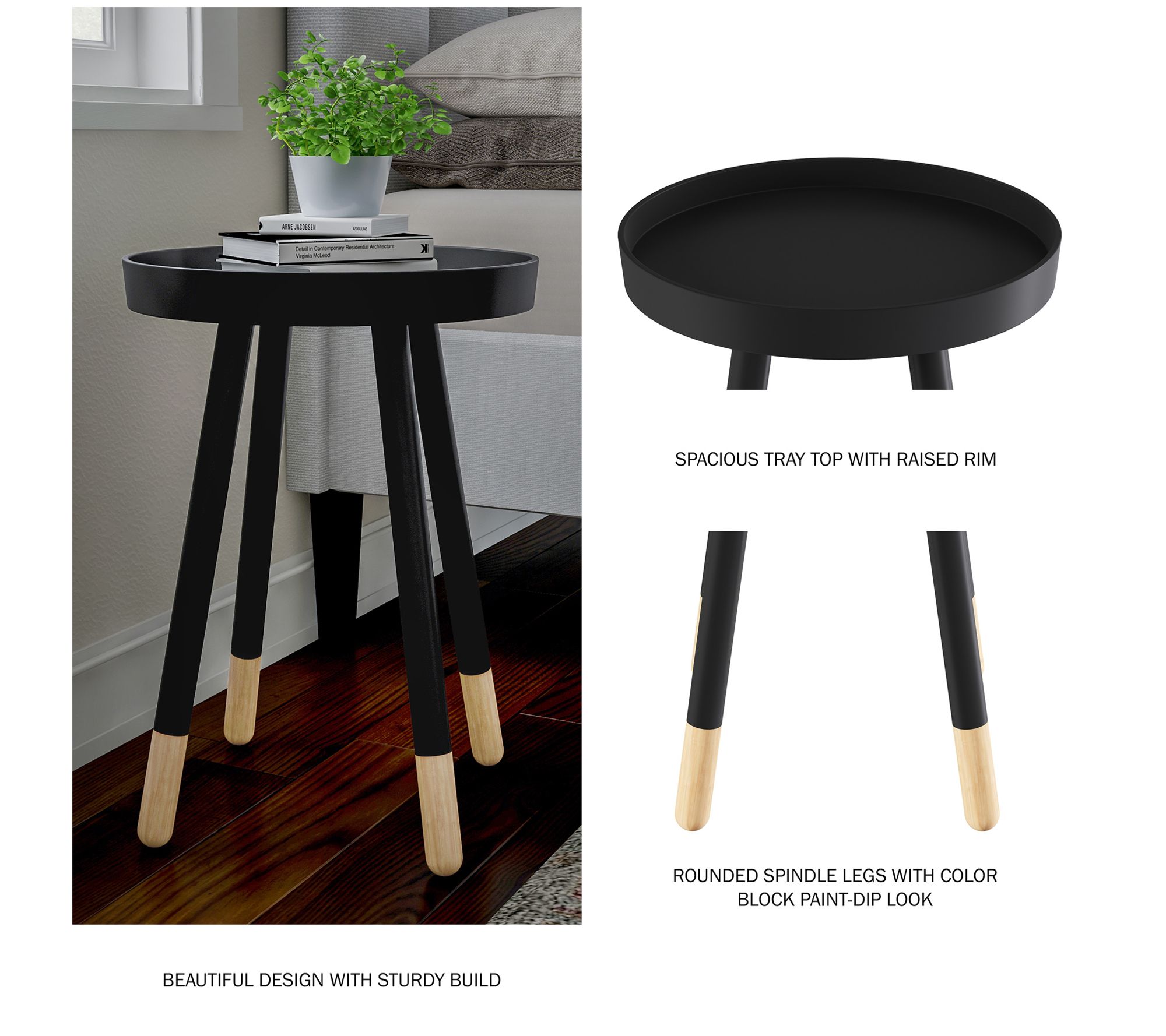 Lavish Home Round End Table Mid-Century Stand with Tray Top