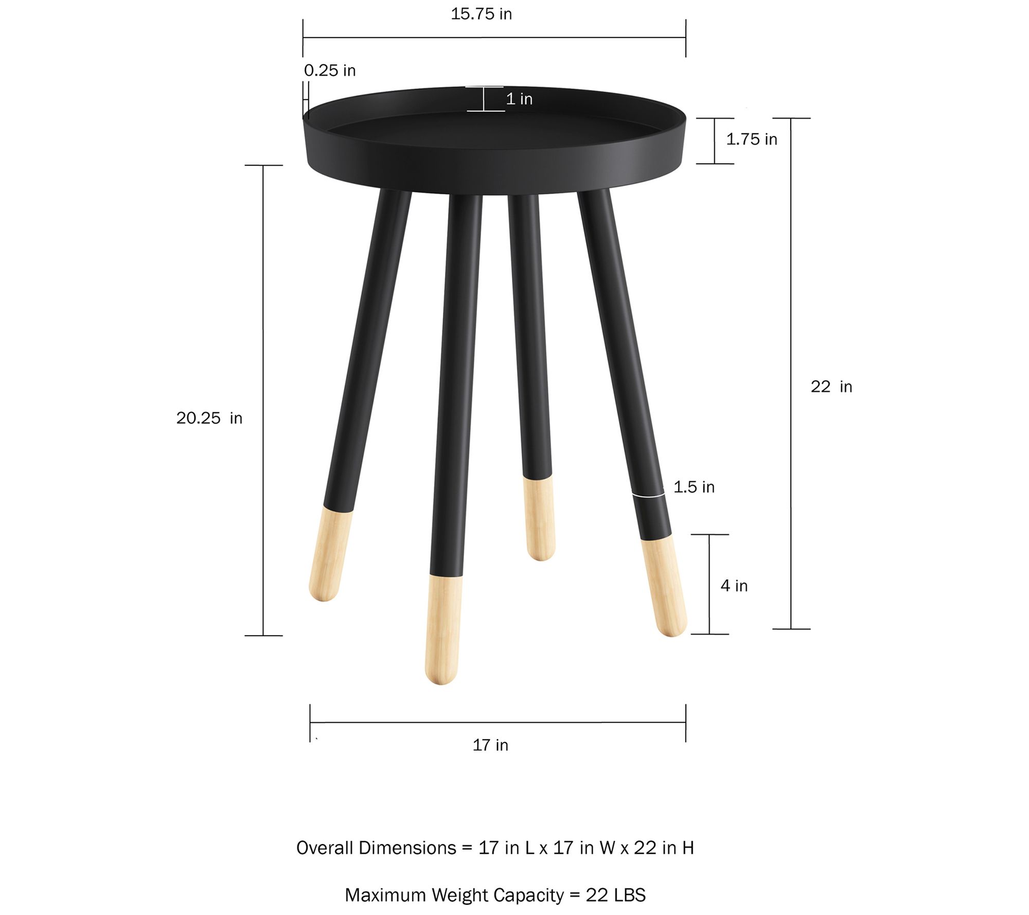 • Measures approximately 17"L x 17"W x 22"H, supports up to 22 lbs