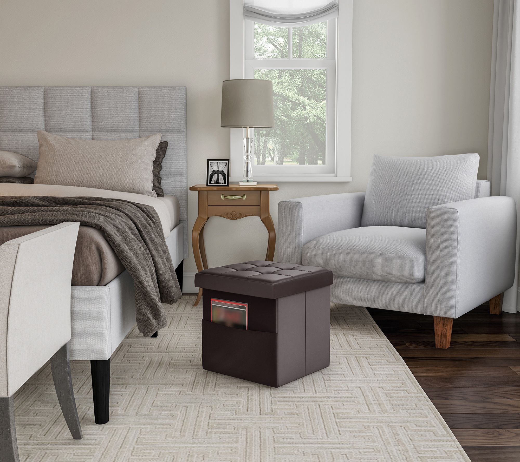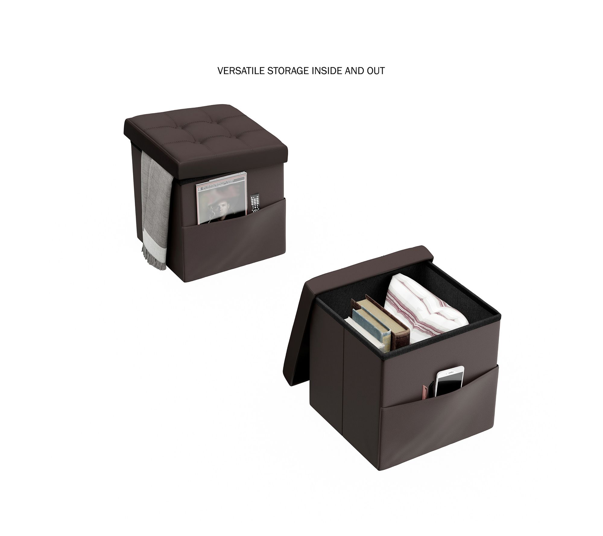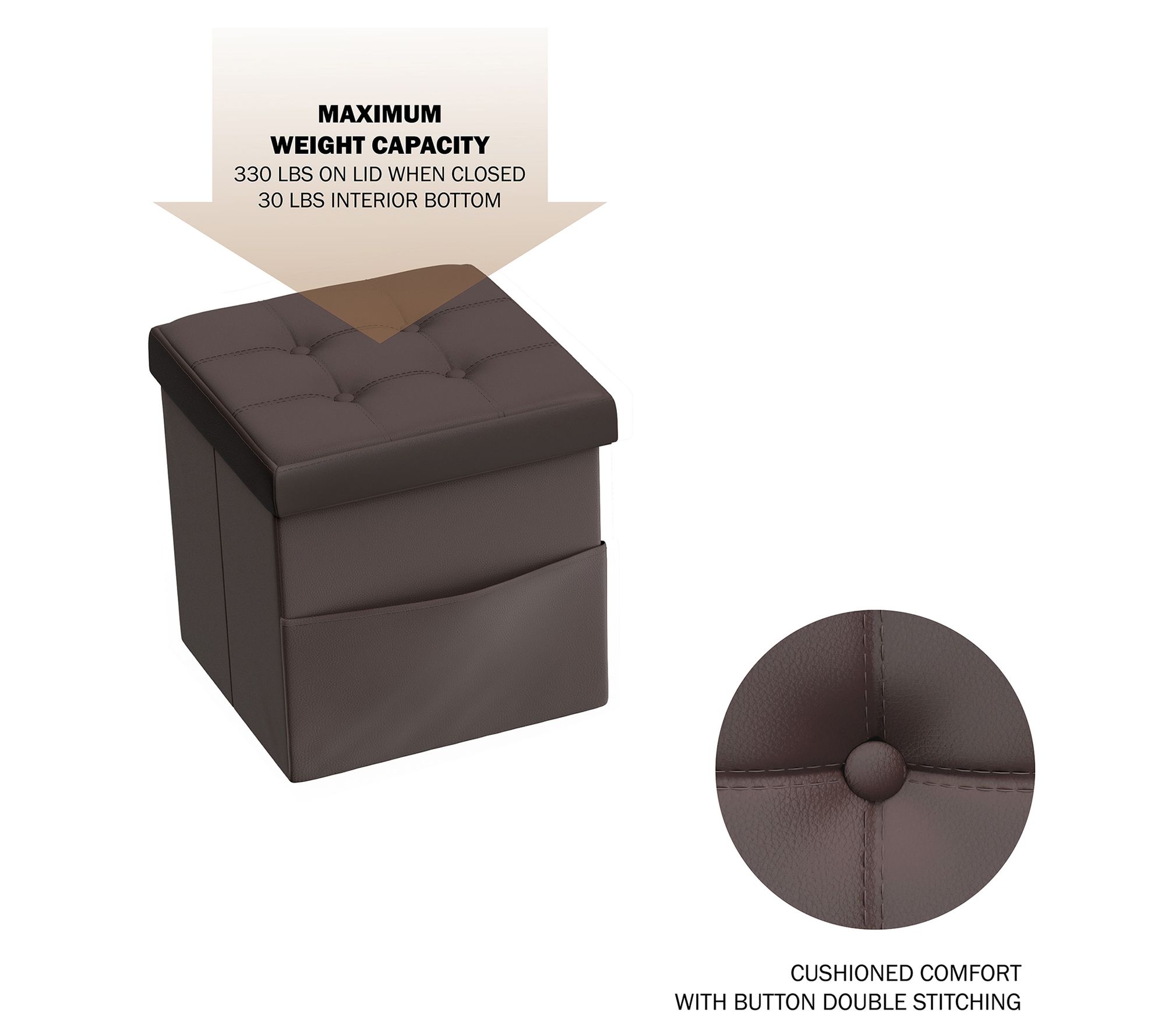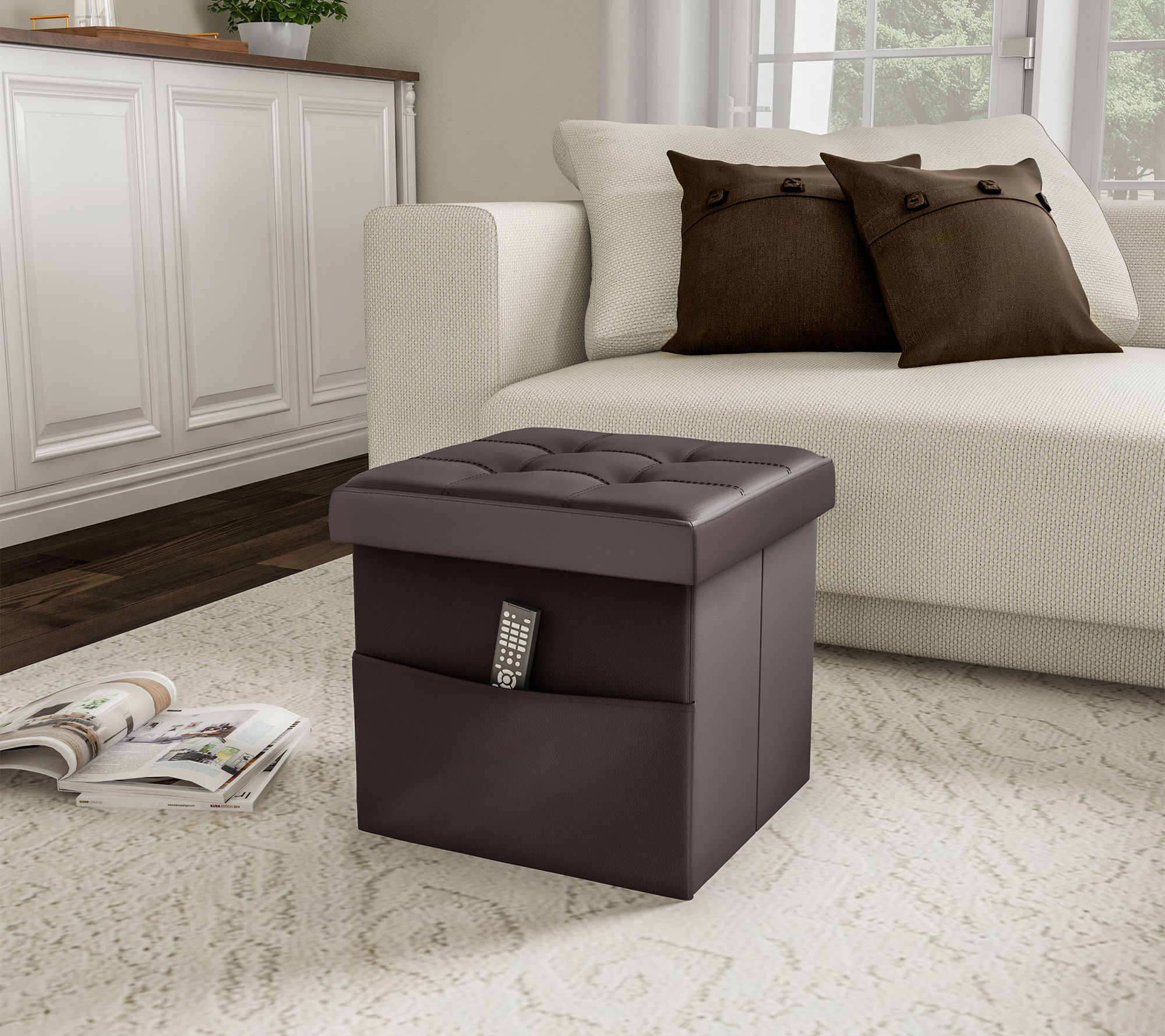 Lavish Home Storage Ottoman w/Folding Tufted Faux Leather