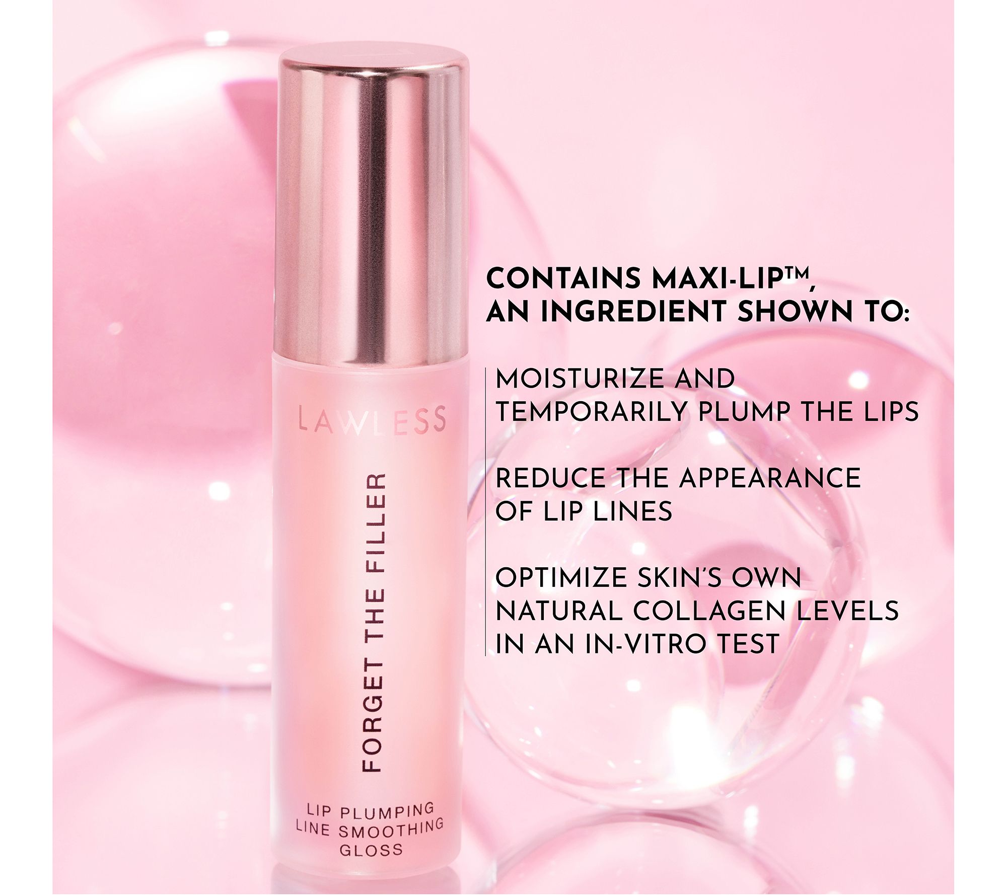 Top with Forget The Filler Lip Plumping Line Smoothing Gloss for an ultra plump, shiny, and smooth effect.