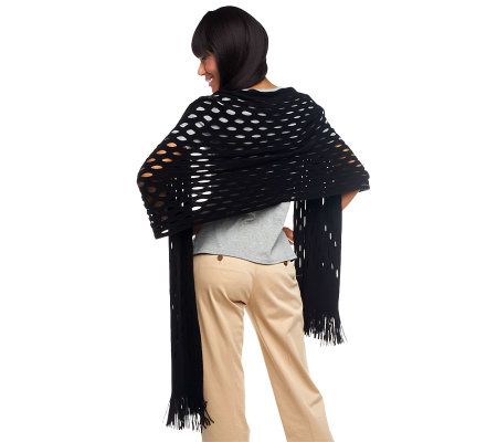 Get all wrapped up in '60s-inspired style. This comfy, lightweight Marvelush wrap flaunts an open-oval pattern for a fun retro look. And thanks to its lengthy design, it offers a variety of fabulous wearing options. From Layers by Lizden.
