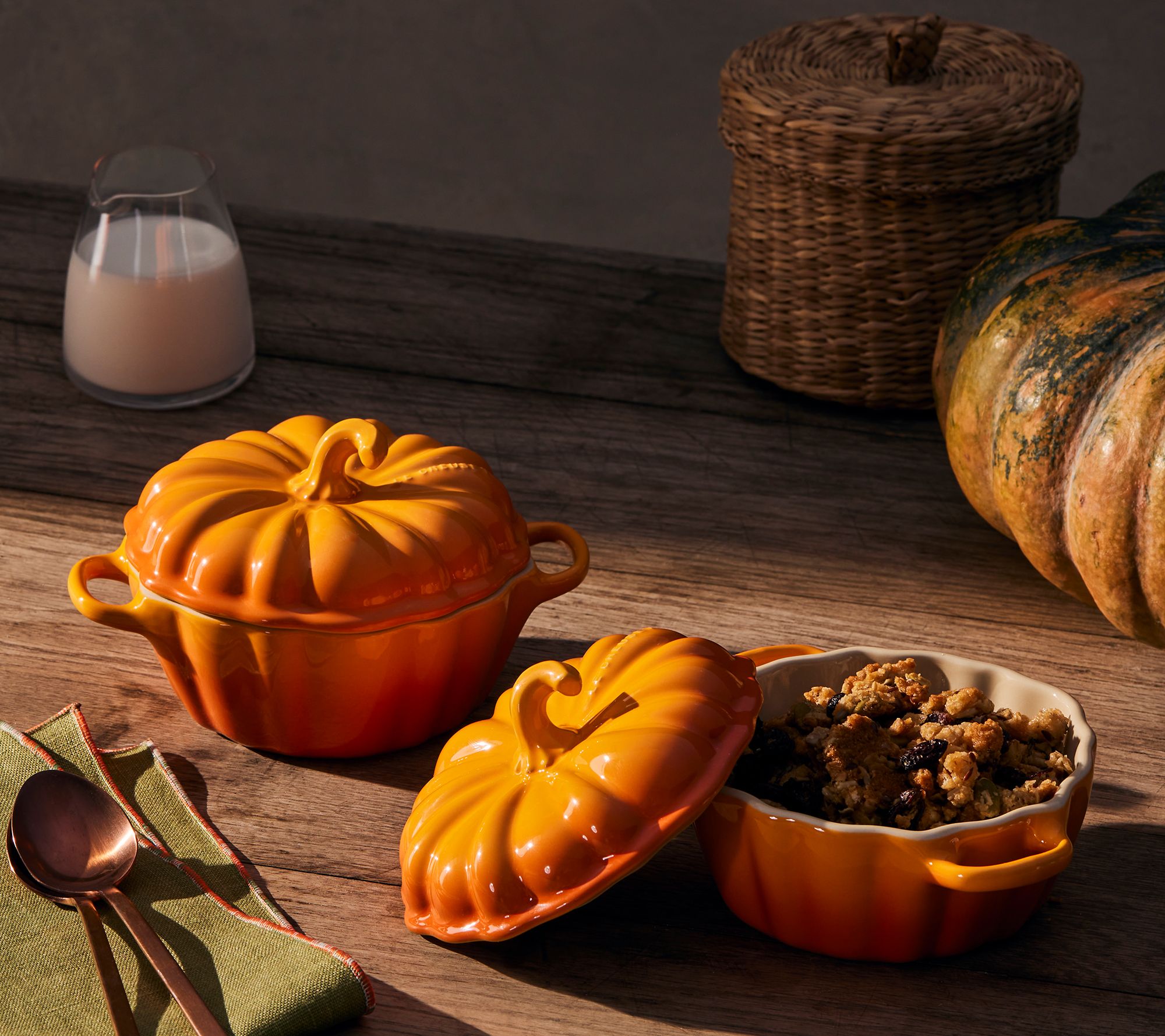 • Includes 12-oz pumpkin cocotte with cover